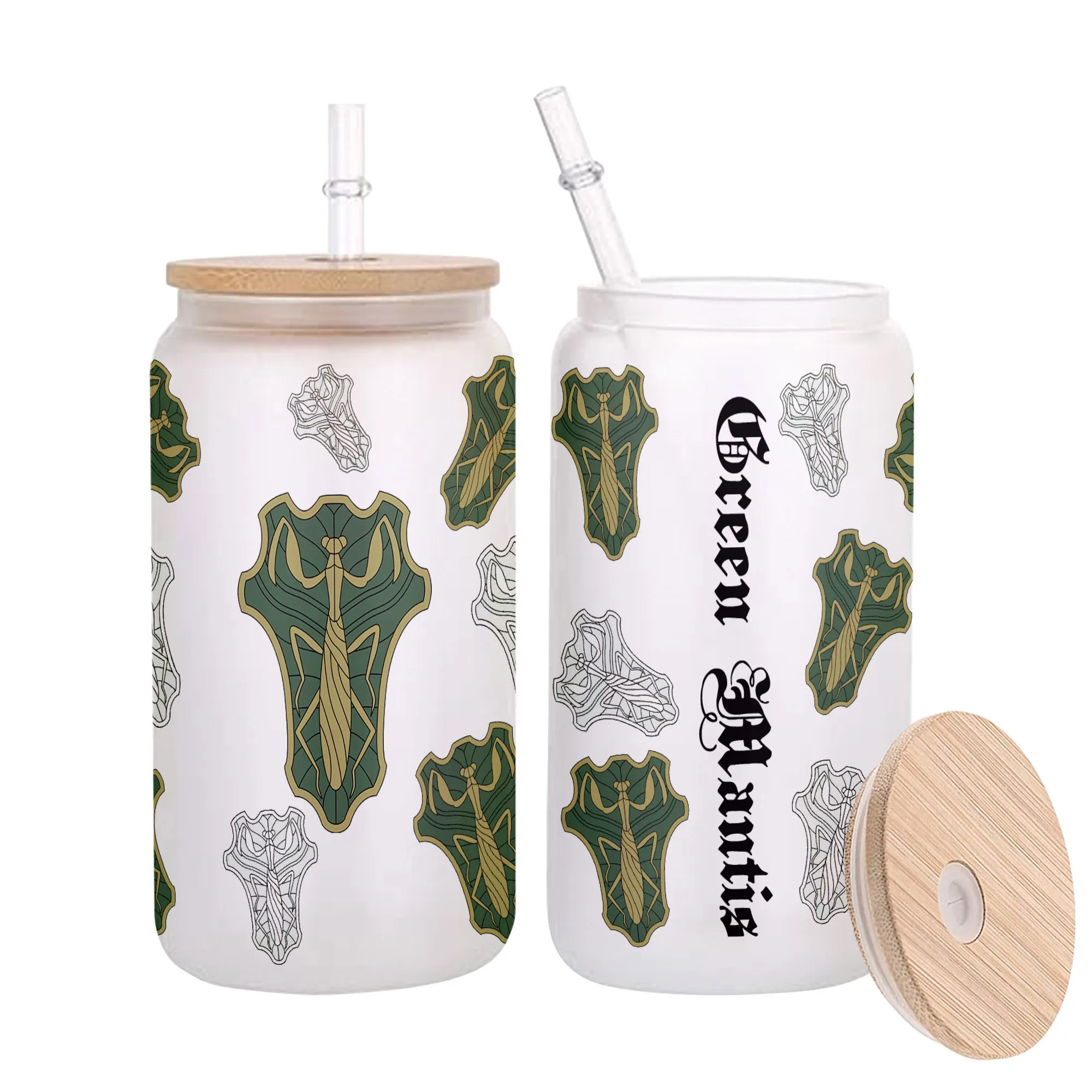 Green Mantis Glass Can 16oz Anime Personalized Name