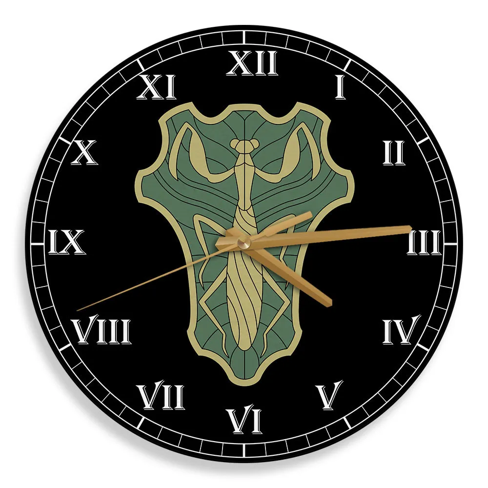 Green Mantis Symbol Wooden Clock Anime Wall Clock