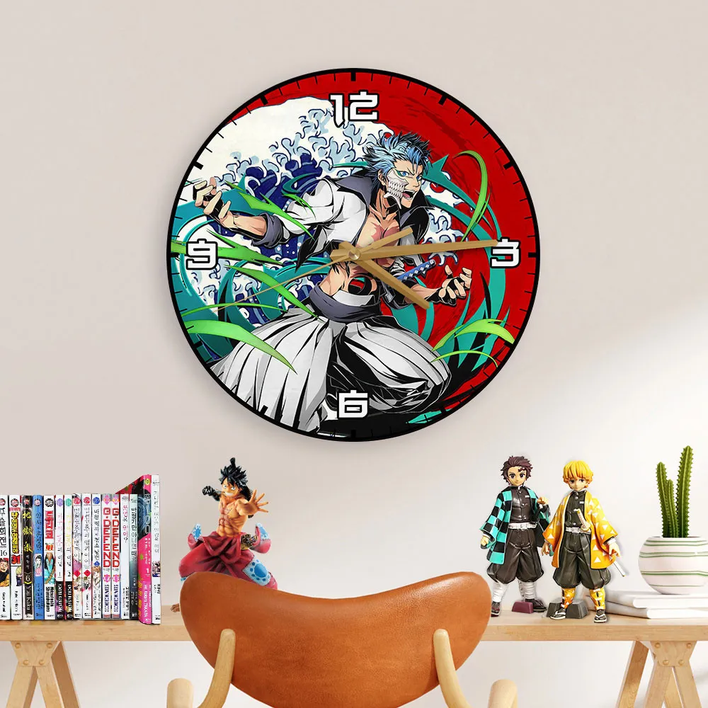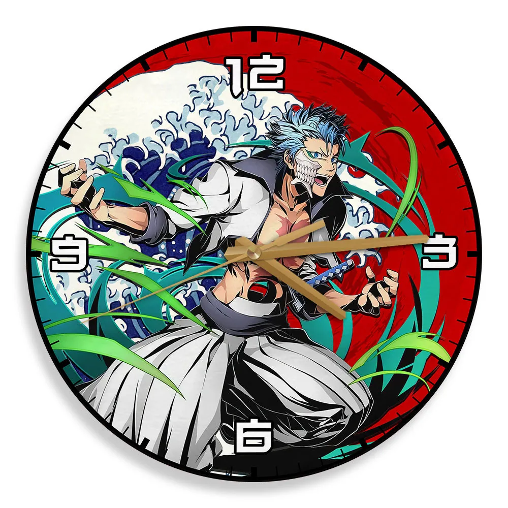 Grimmjow Jaegerjaquez Wooden Wall Clock Kanagawa Wave Red Sun Anime