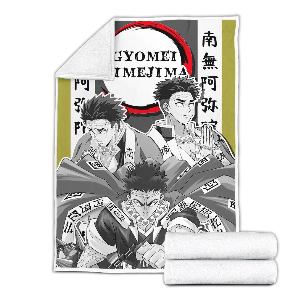Gyomei Fleece Blanket Custom Demon Slayer Anime Uniform Costume Mix Manga Style