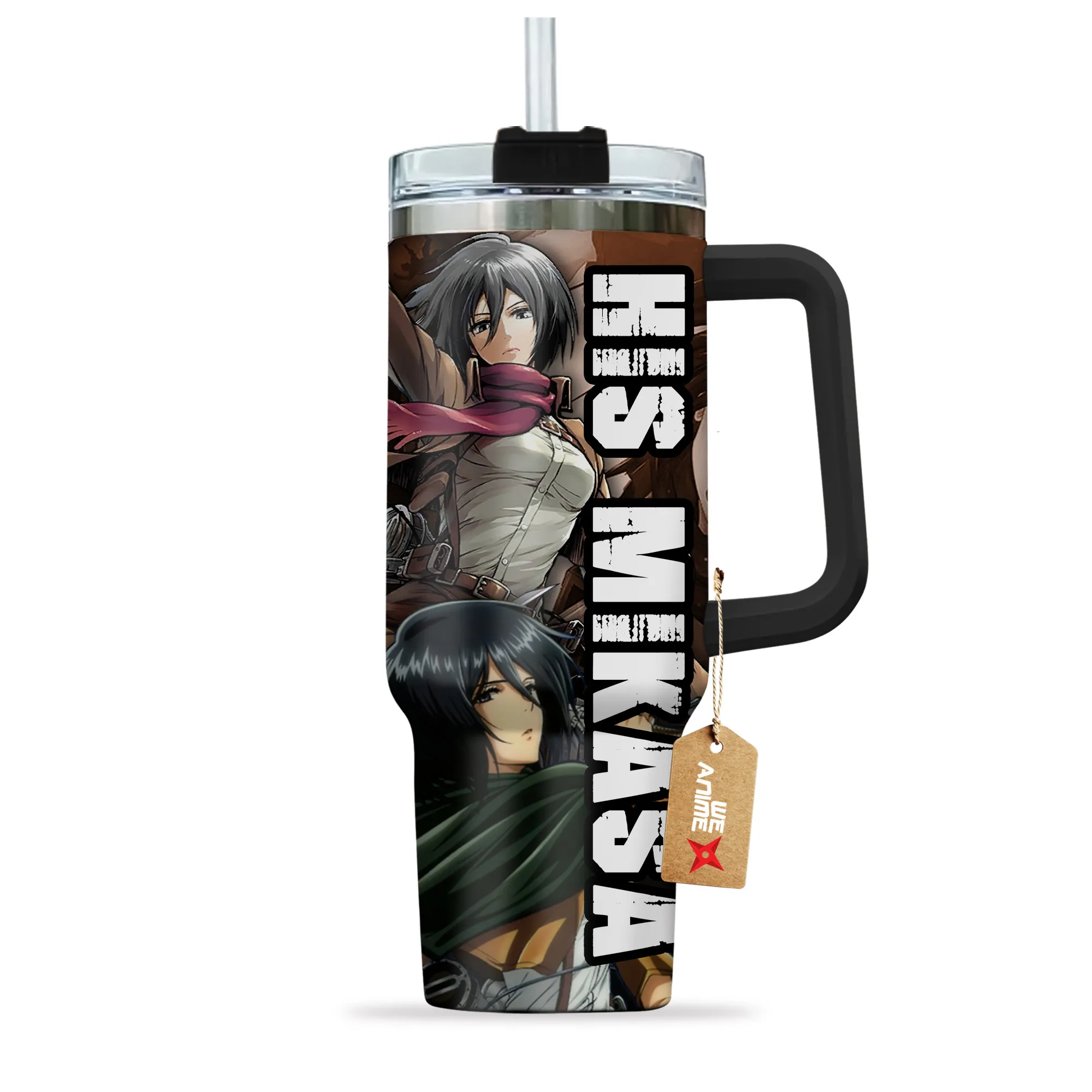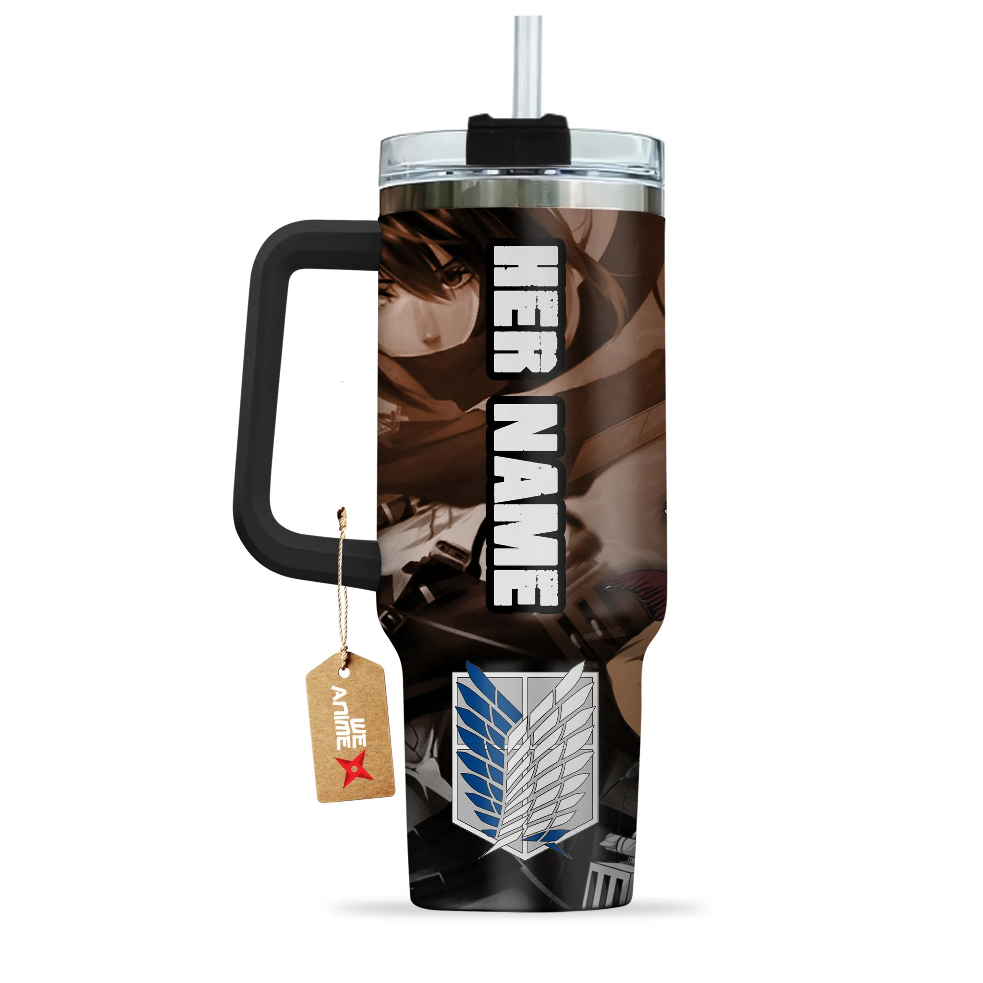 His Mikasa Ackerman 40oz Travel Tumbler With Handle Custom Name Anime Valentine Cup