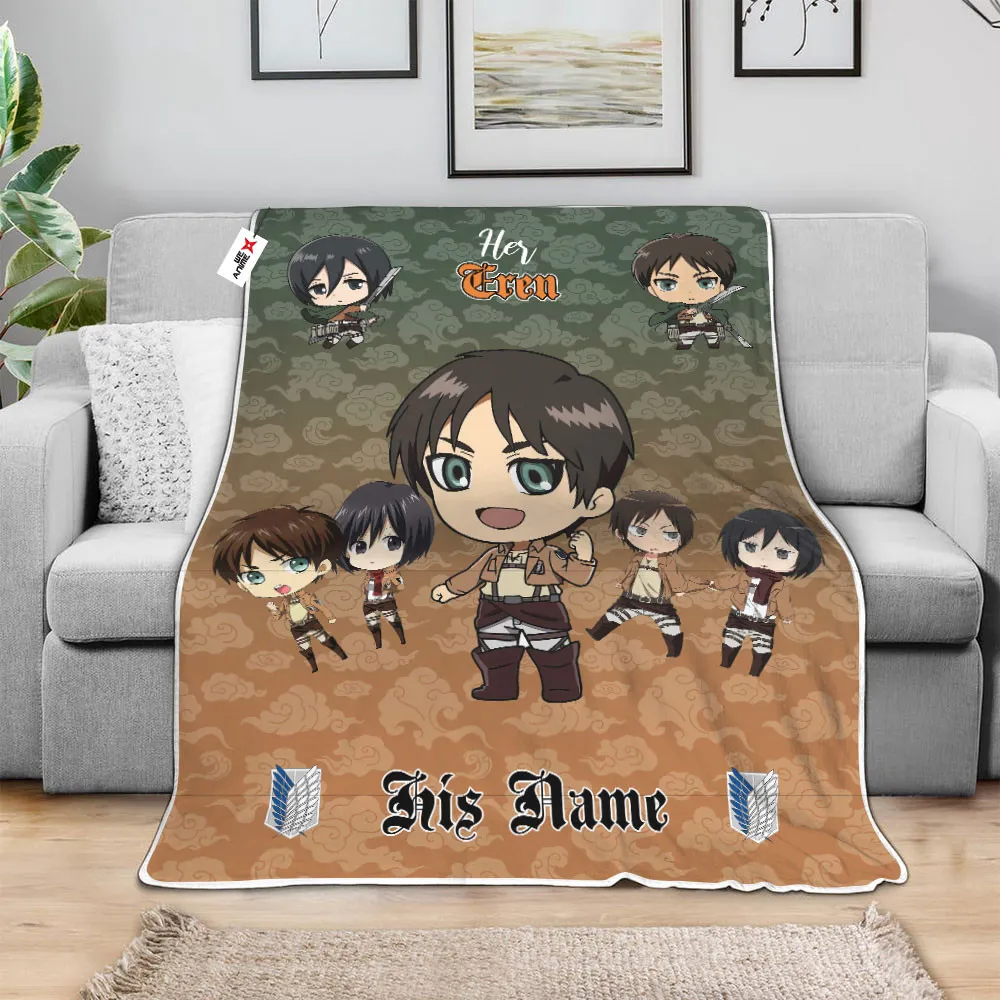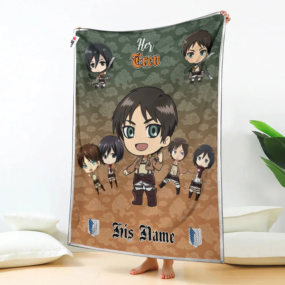 Her Eren Yeager Fleece Blanket Valentine Her and His Collection