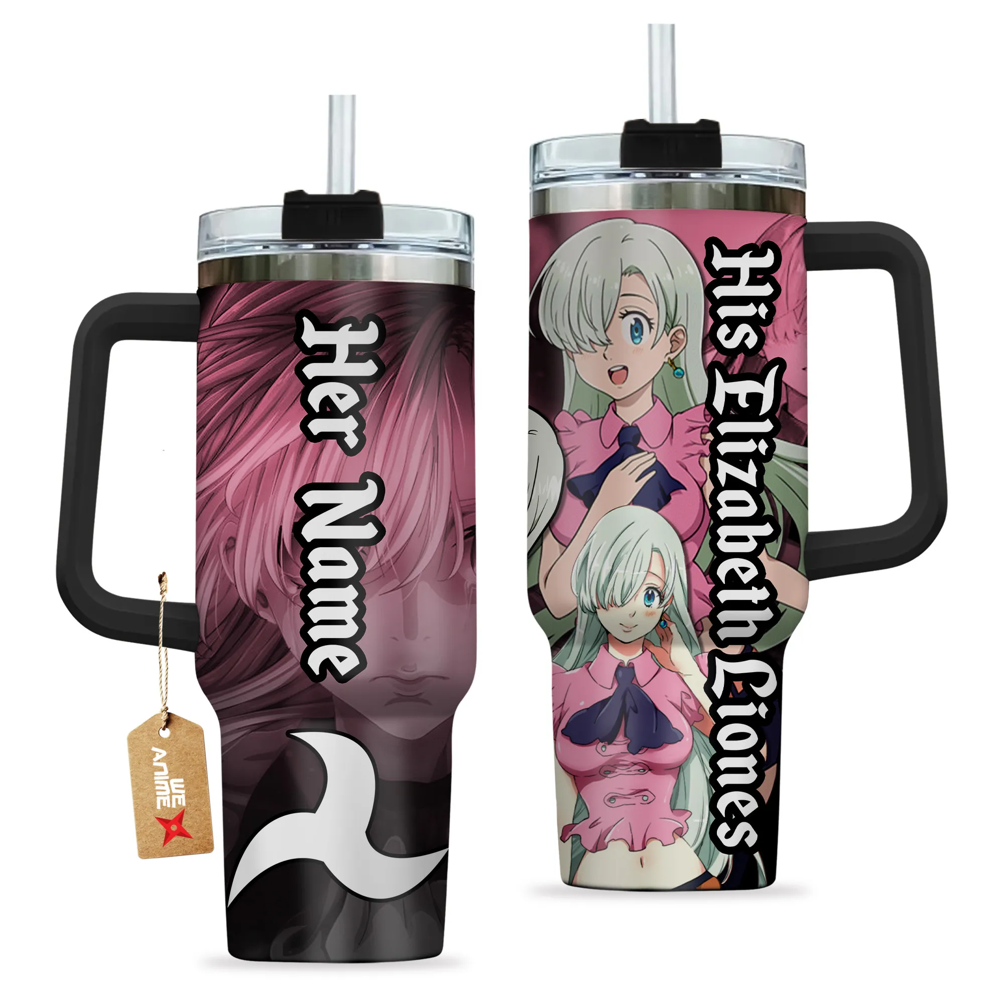 His Elizabeth Liones 40oz Travel Tumbler With Handle Personalized Anime Valentines Cup