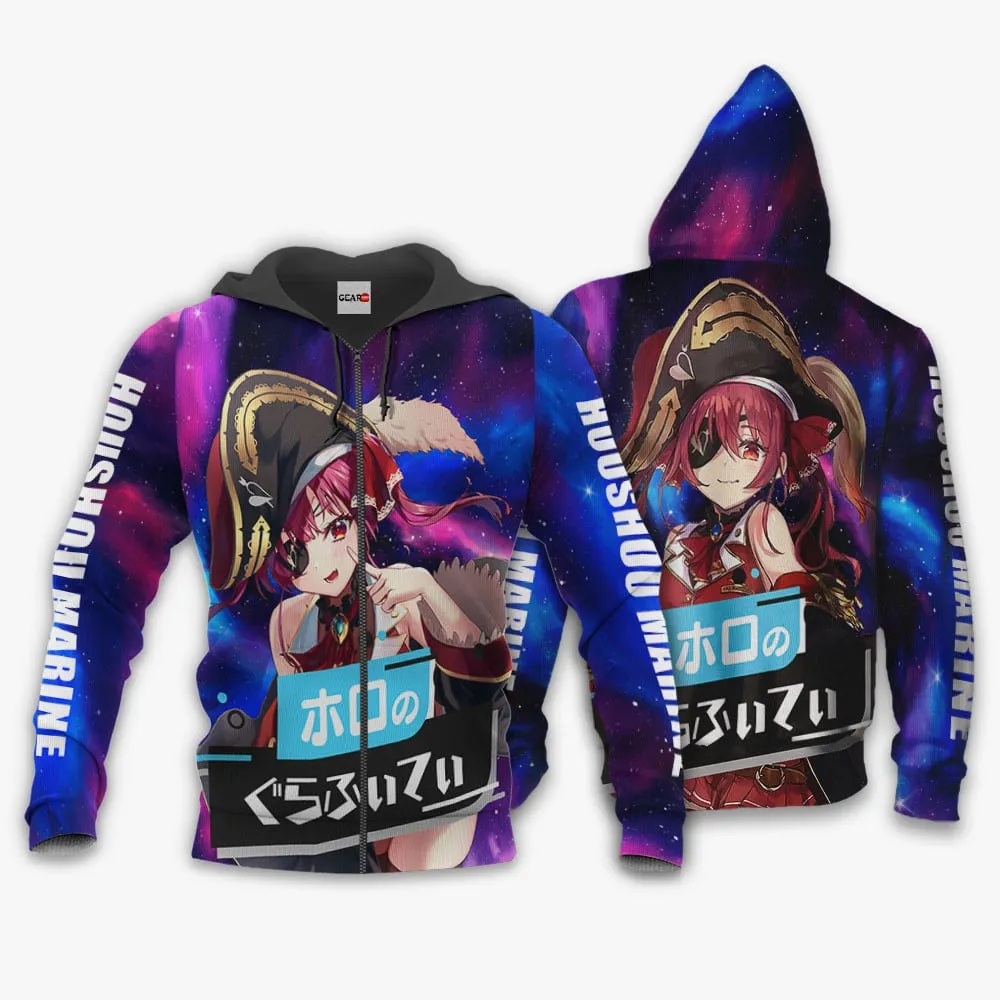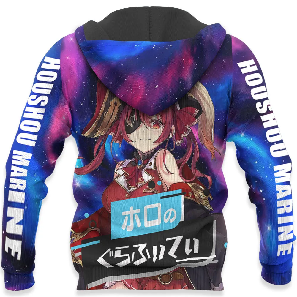 Houshou Marine Zip Hoodie Holo Graffiti Custom Anime Galaxy Style