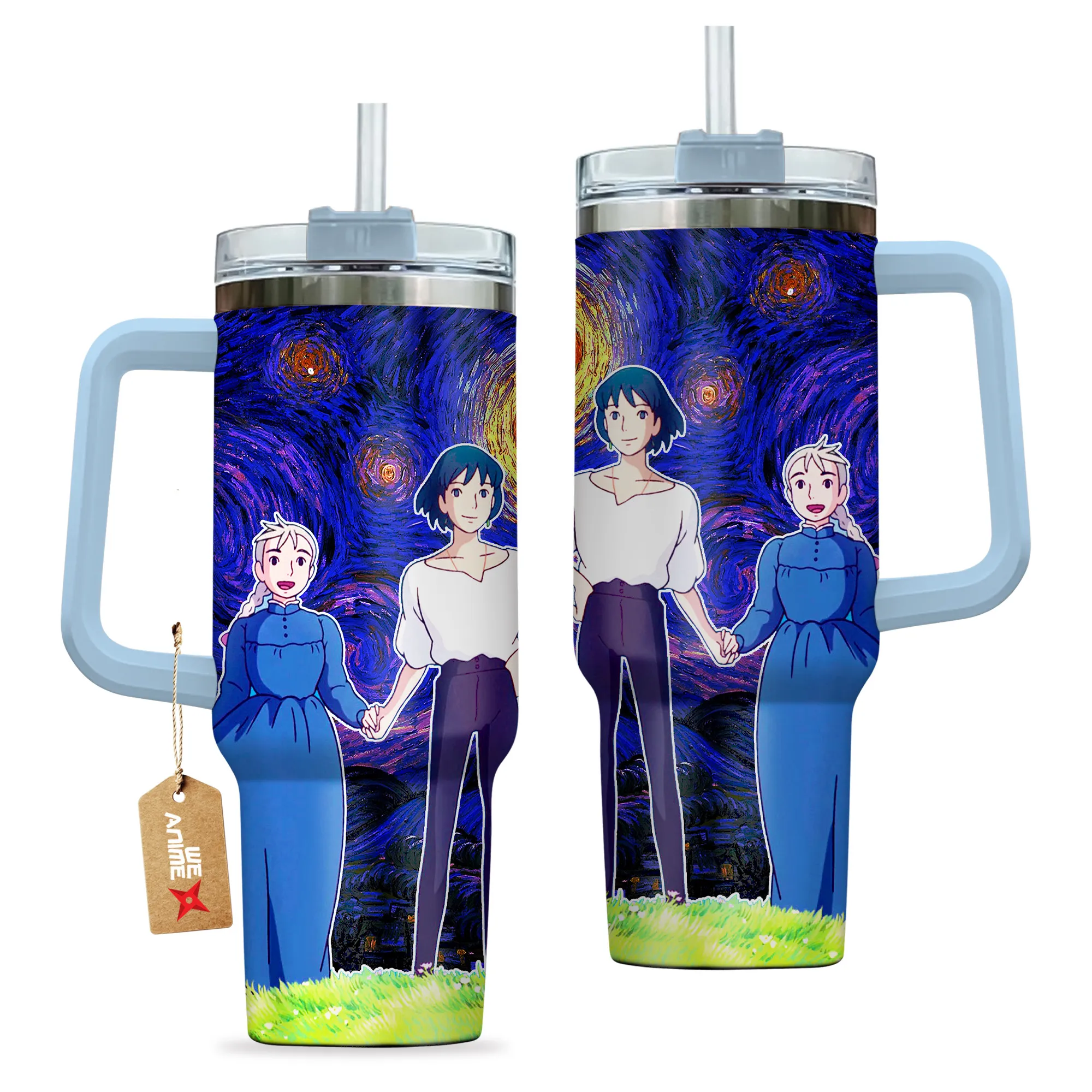 Howl and Sophie 40oz Travel Tumbler With Handle Personalized Starry Night Collection