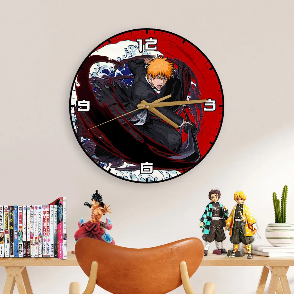 Ichigo Kurosaki Wooden Wall Clock Kanagawa Wave Red Sun Anime