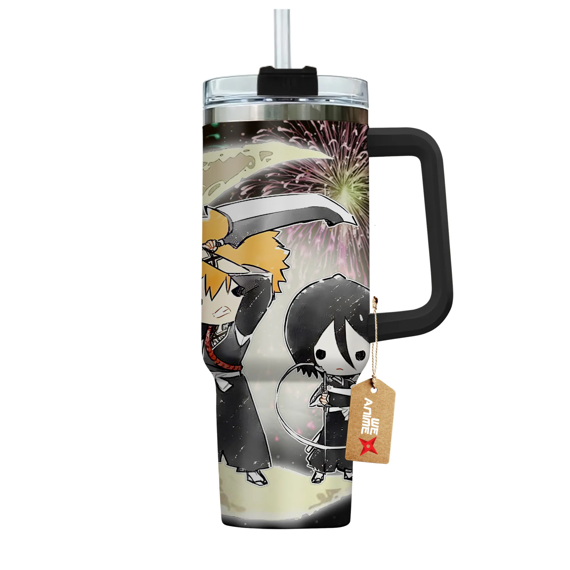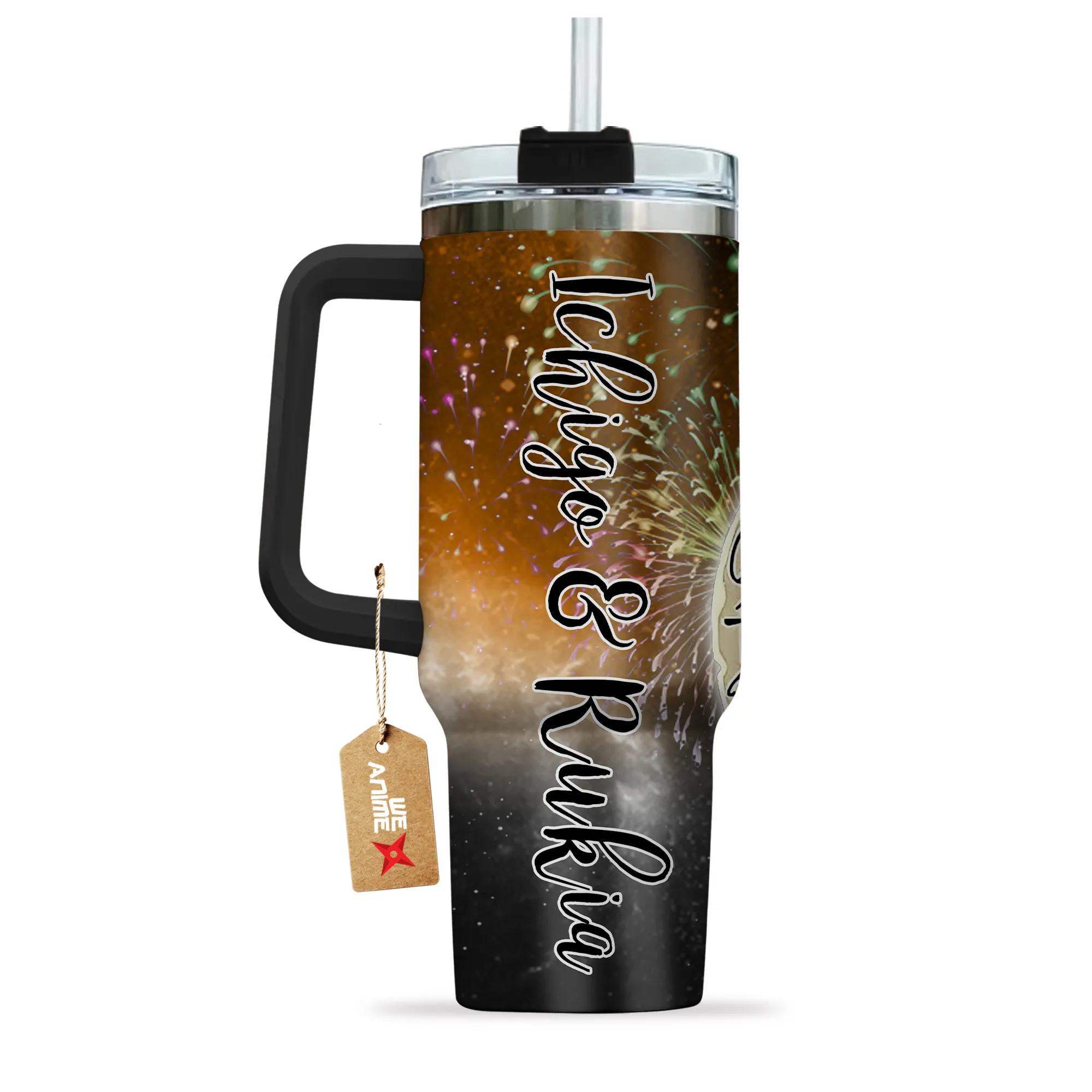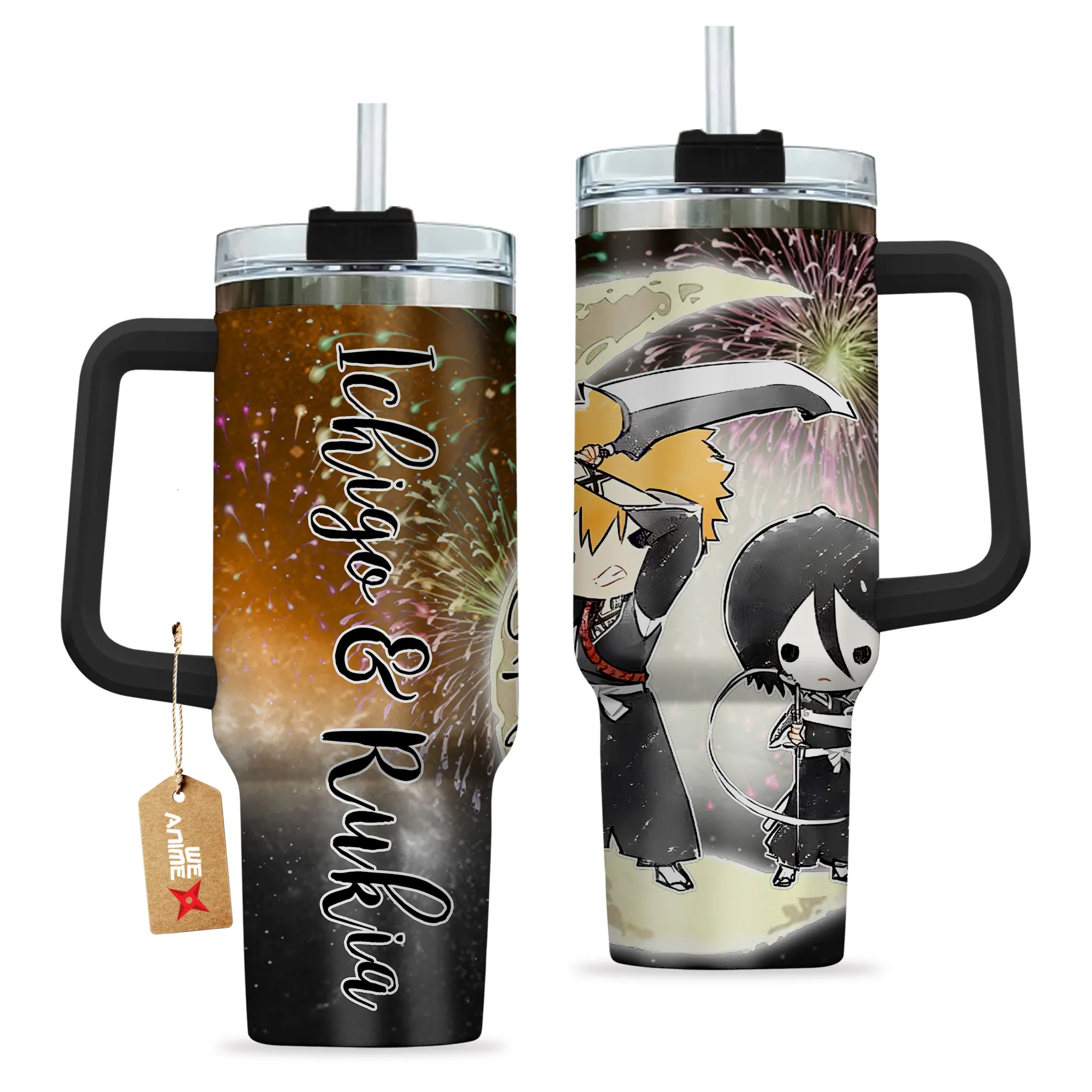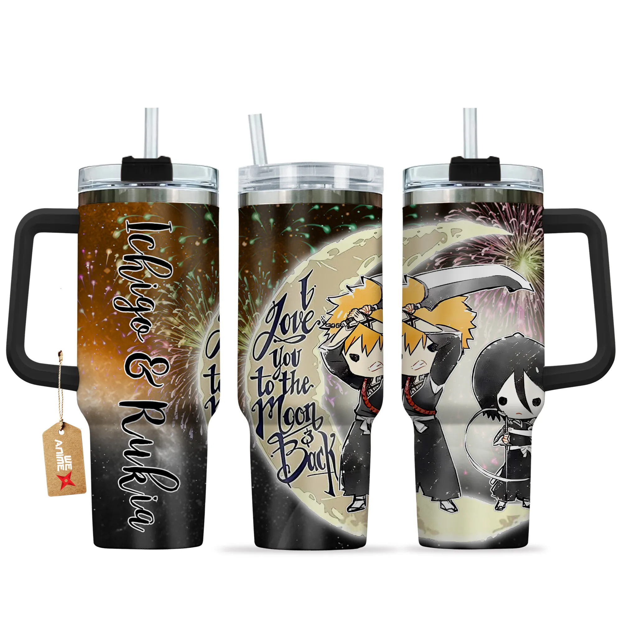 Ichigo & Rukia 40oz Travel Tumbler With Handle Personalized I Love You To The Moon And Back Collection