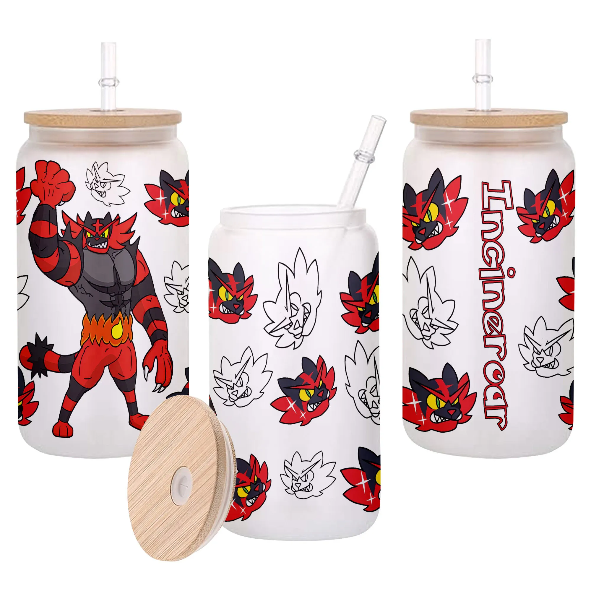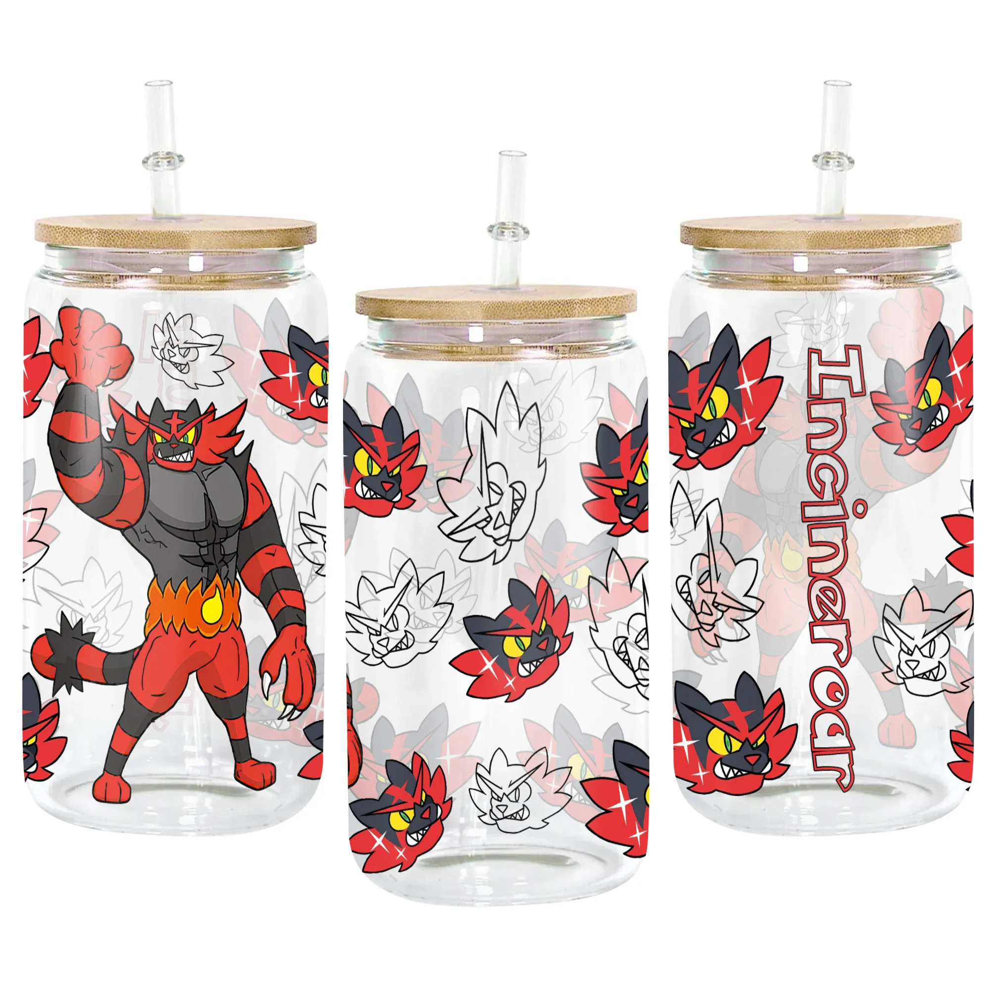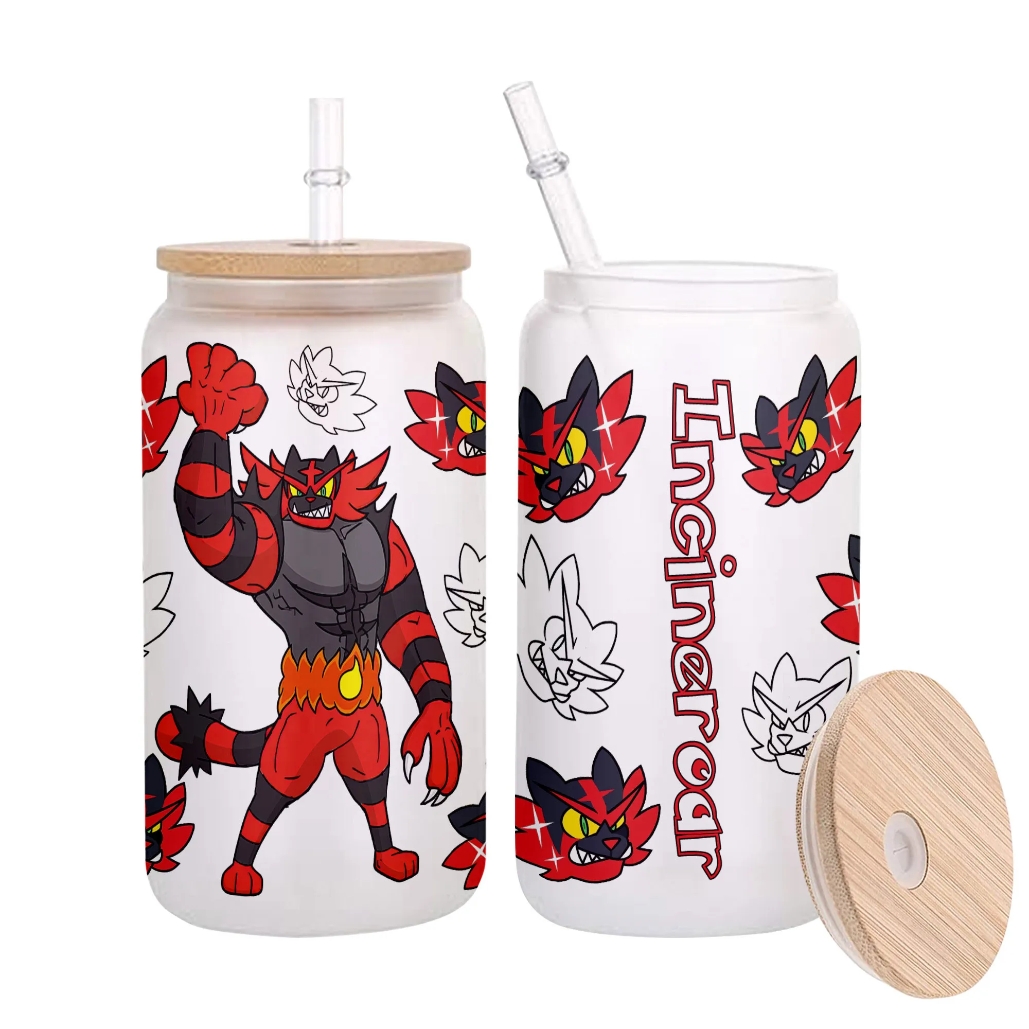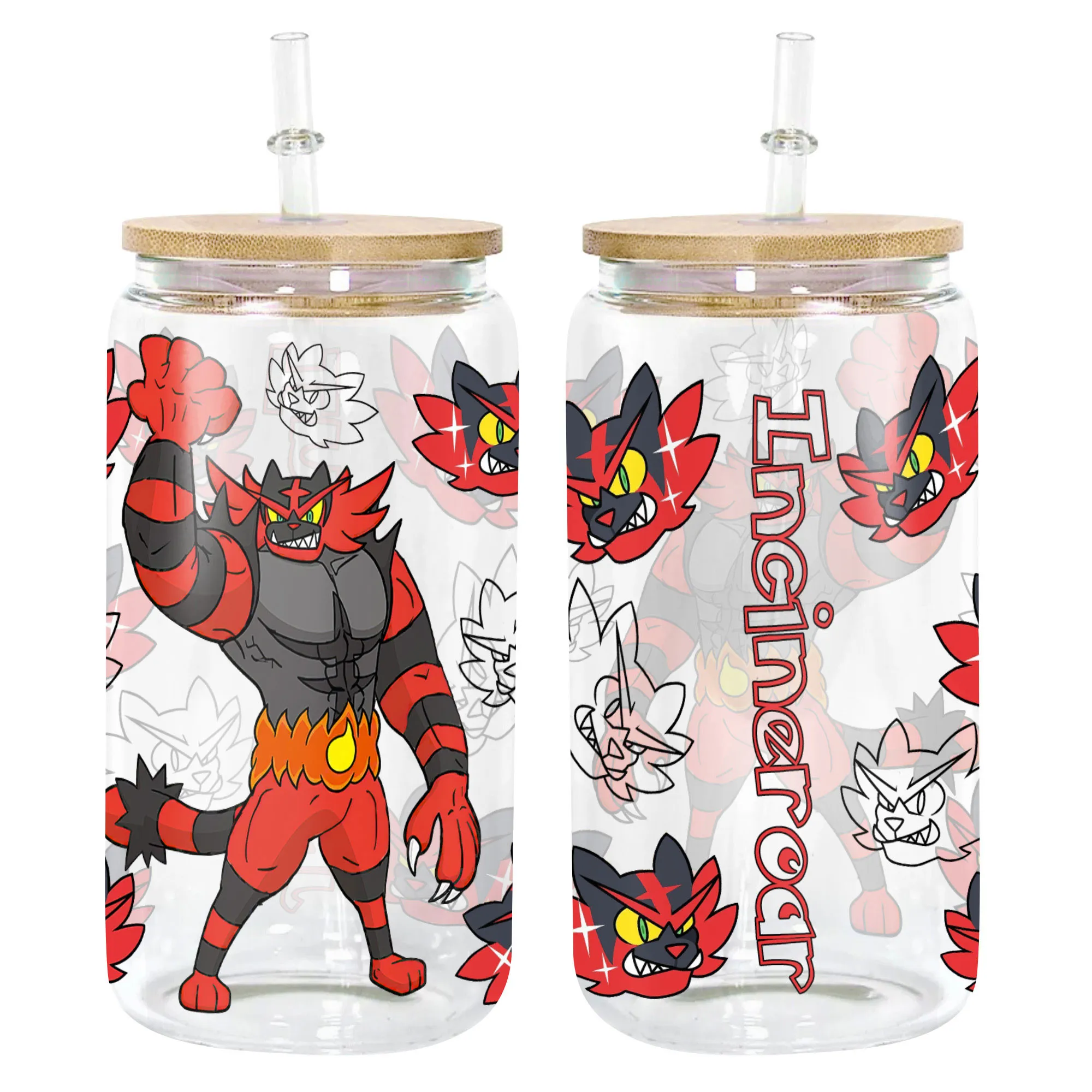 Incineroar Glass Can 16oz Anime Personalized Name