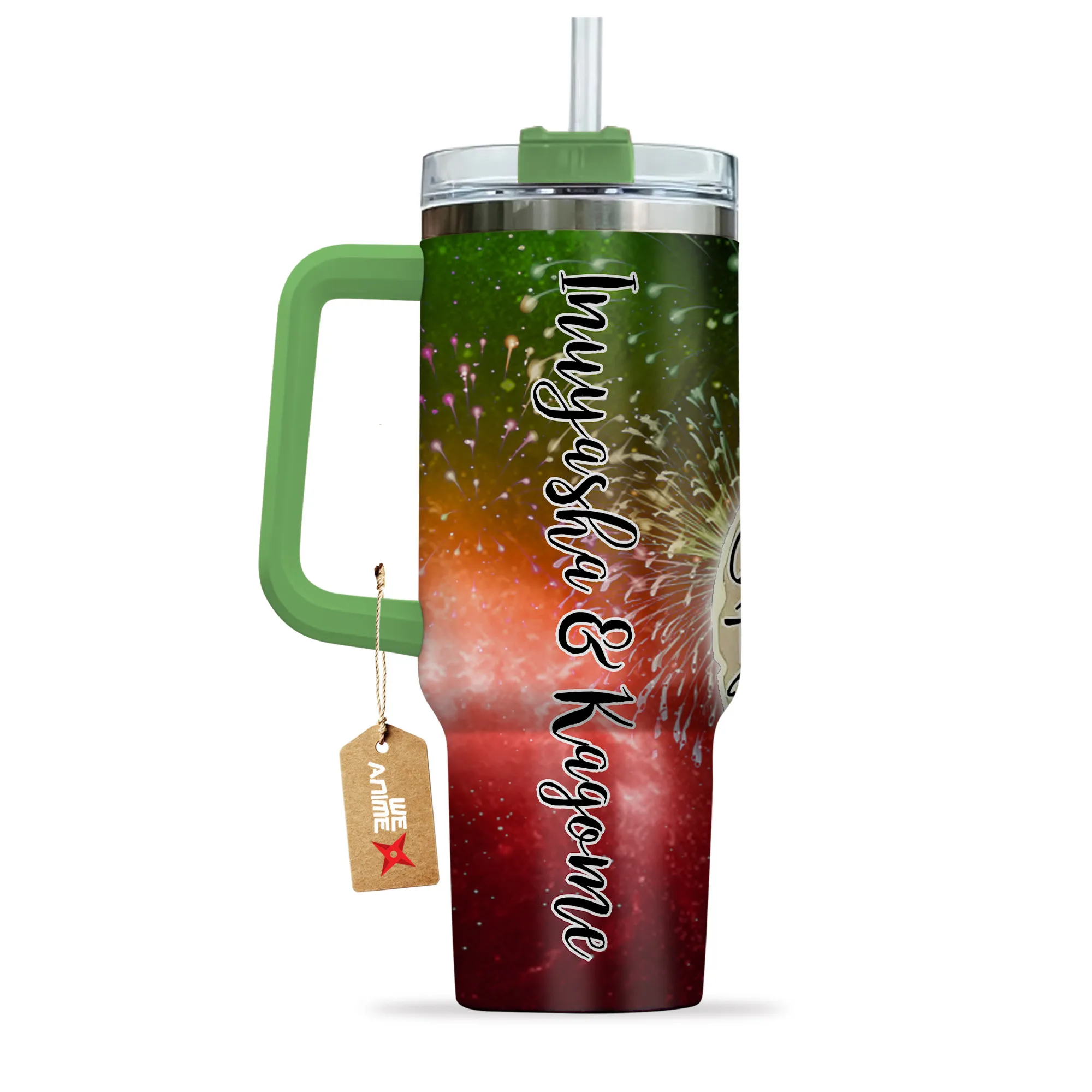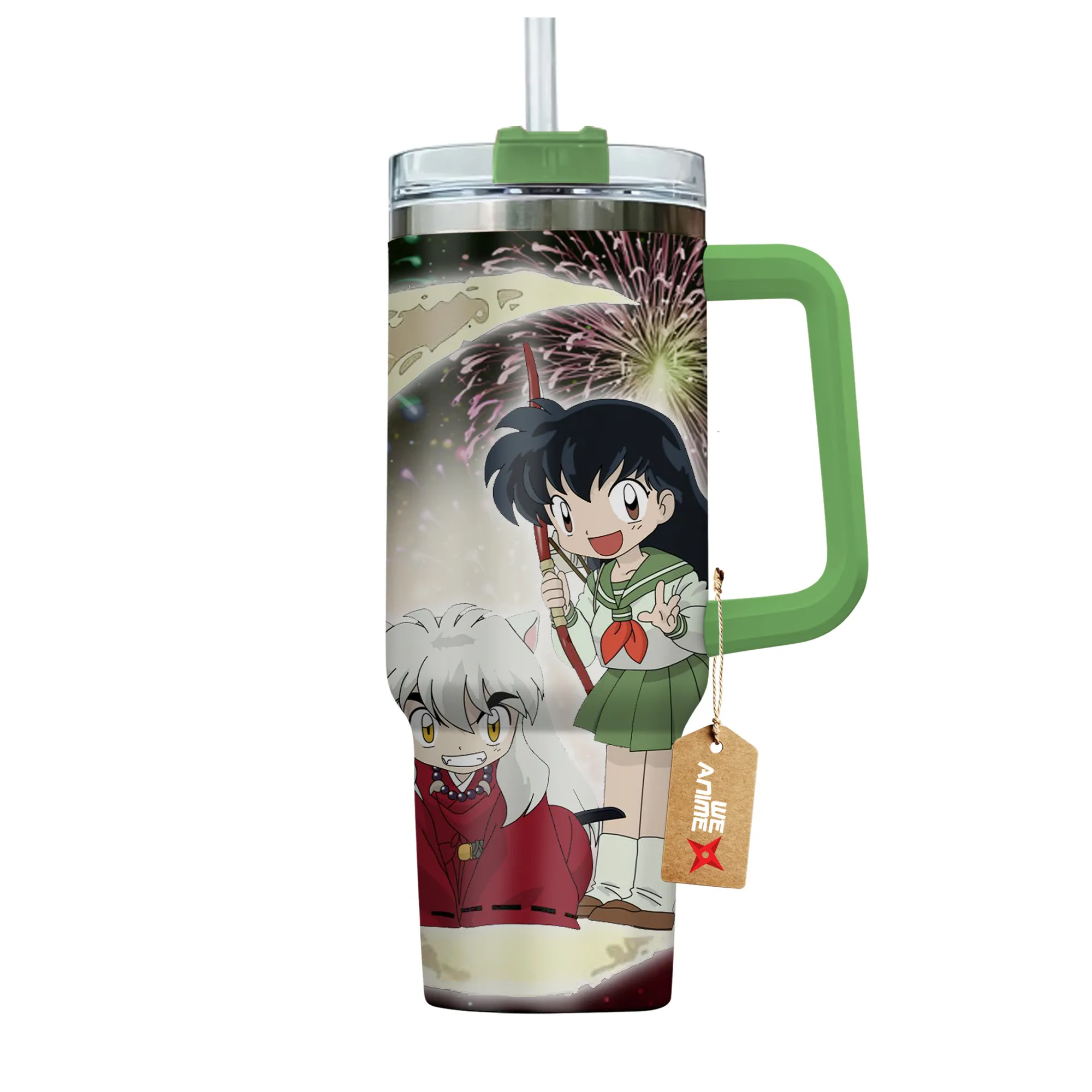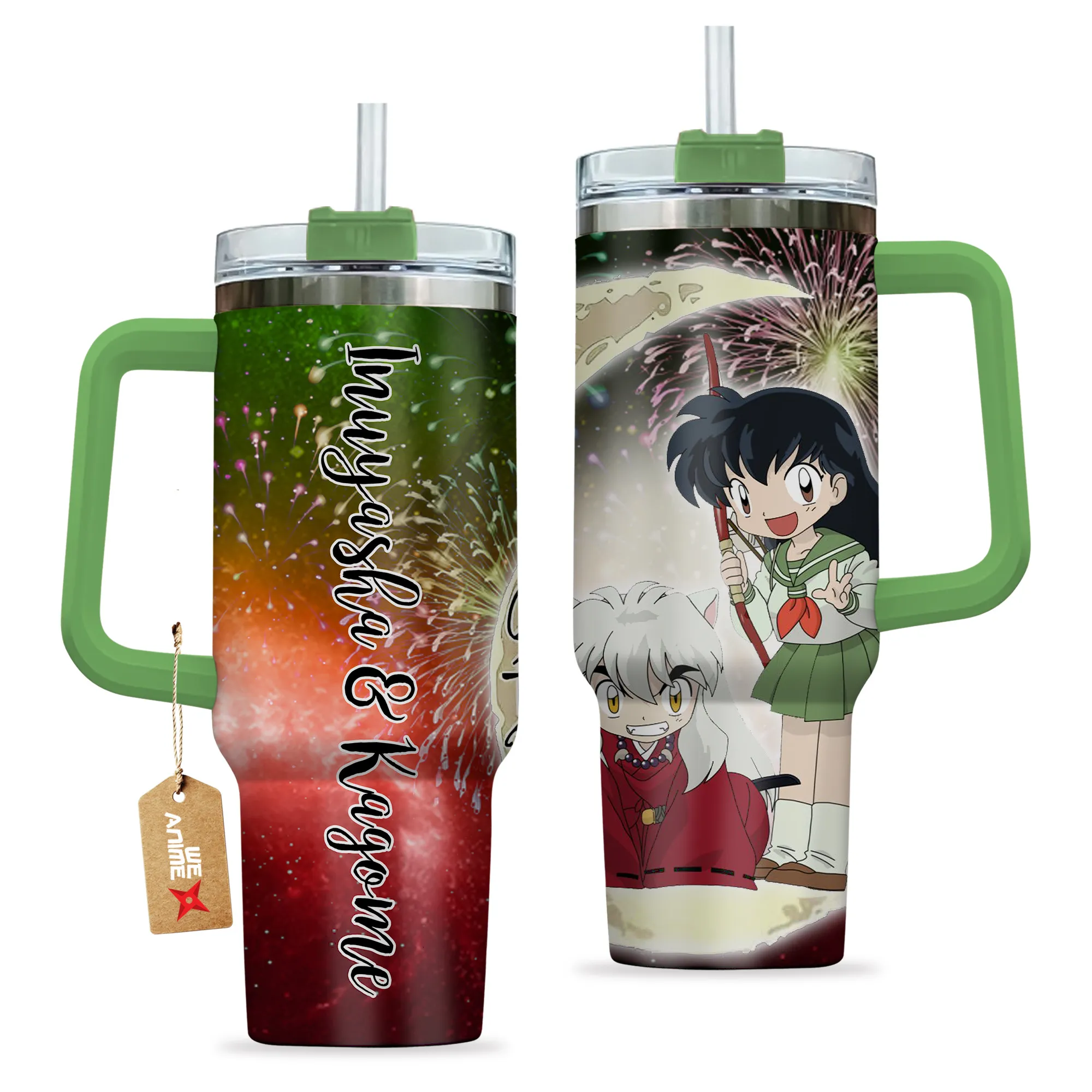 Inuyasha & Kagome 40oz Travel Tumbler With Handle Personalized I Love You To The Moon And Back Collection
