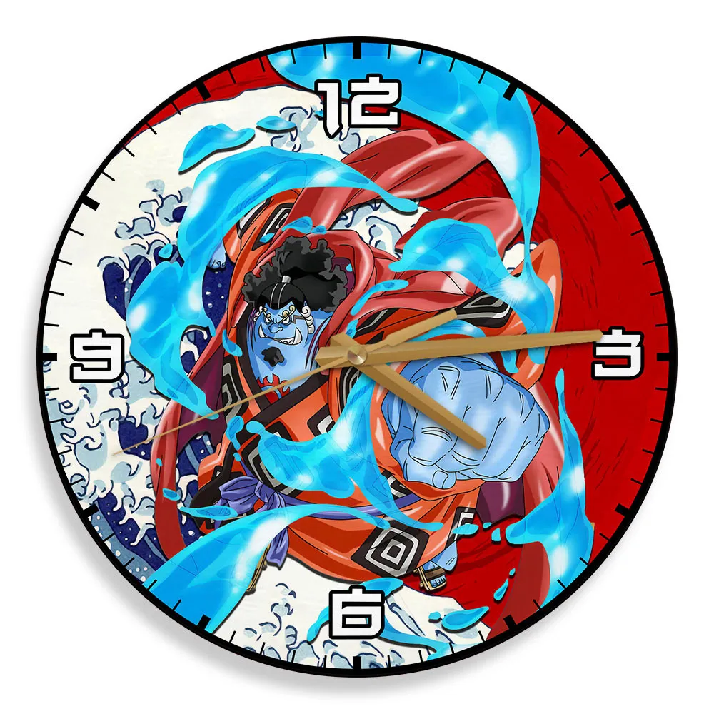Jinbe Kanagawa Wave Red Sun Anime Wooden Wall Clock