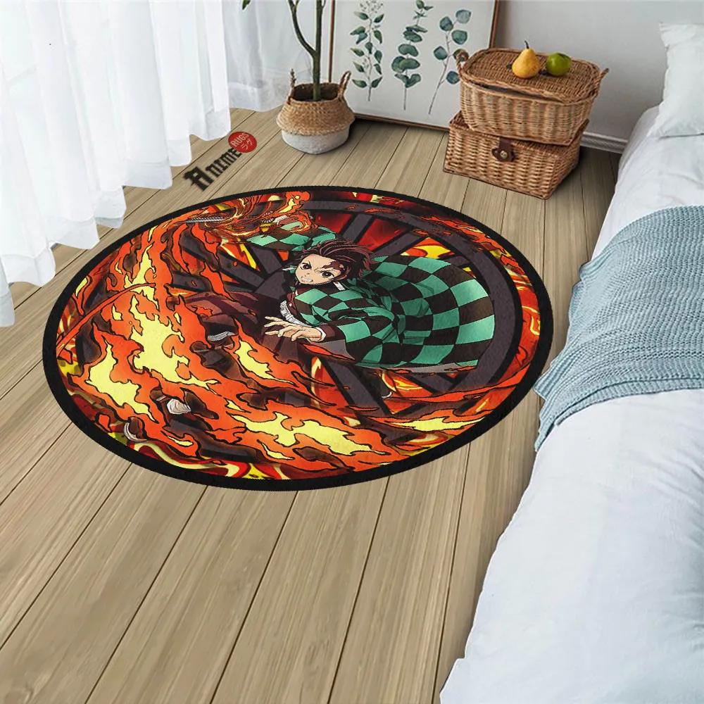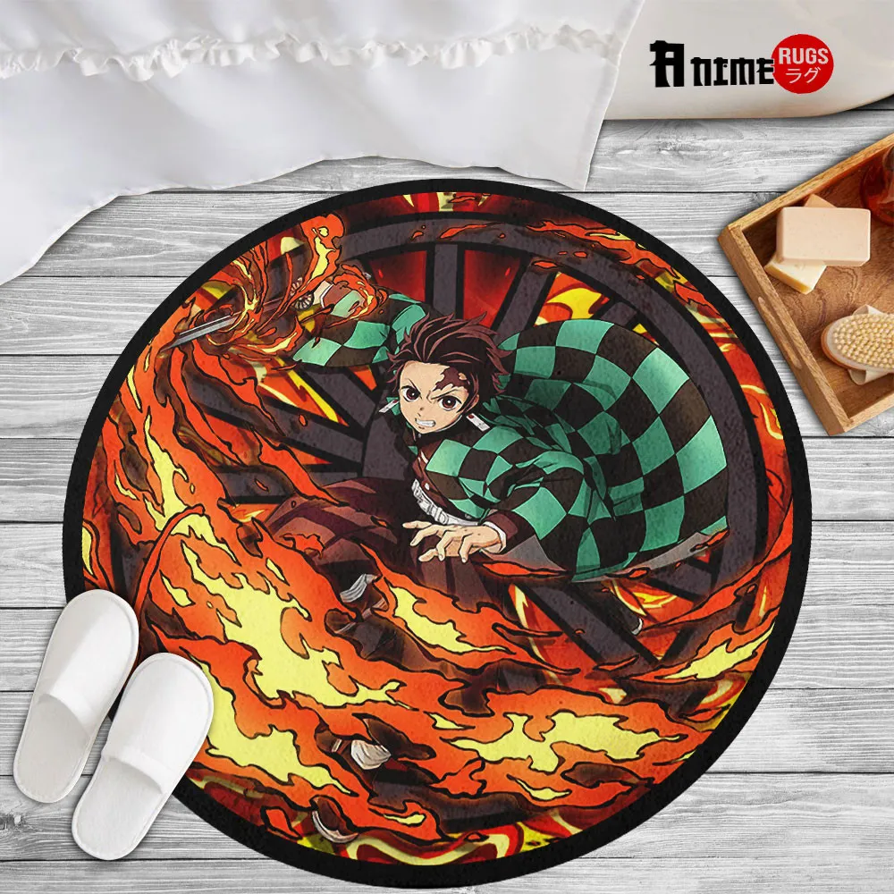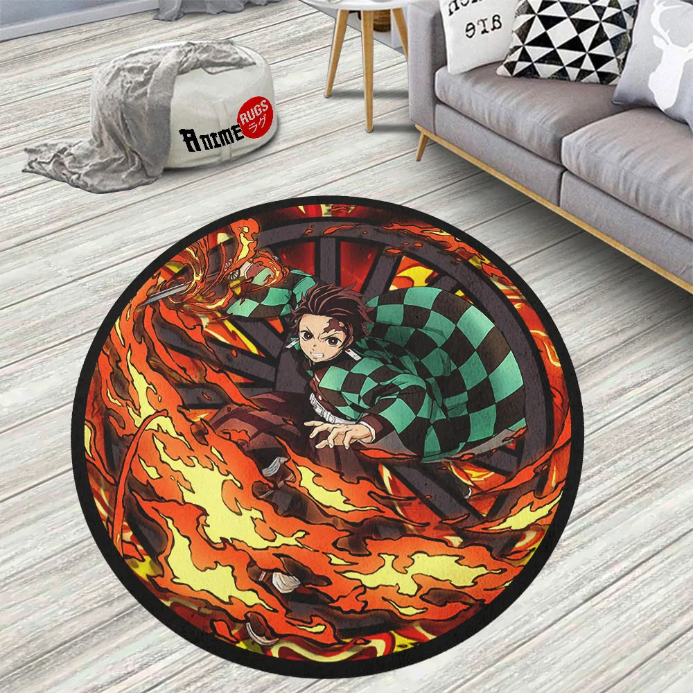 Kamado Tanj Sun Breathing Round Rug Anime Room Mats