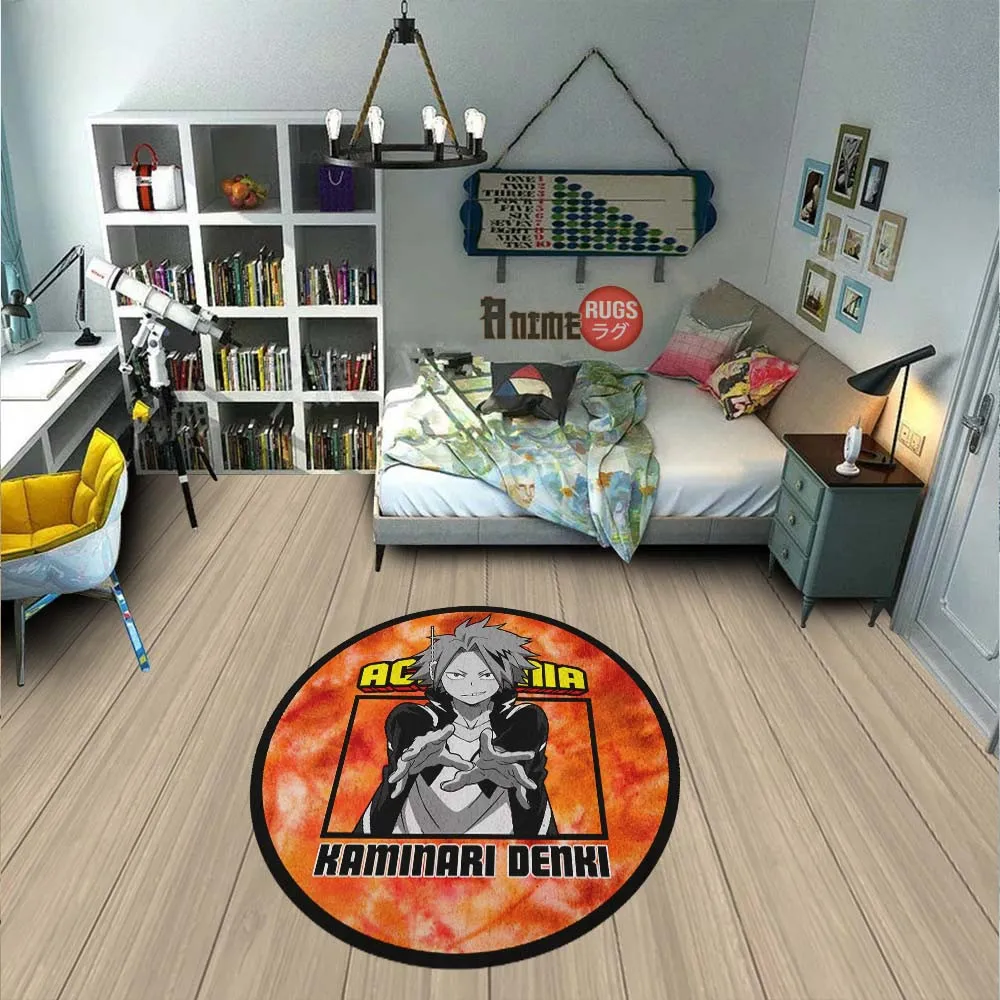 Kaminari Denki Round Rug Custom Tie Dye Style Anime Room Mats