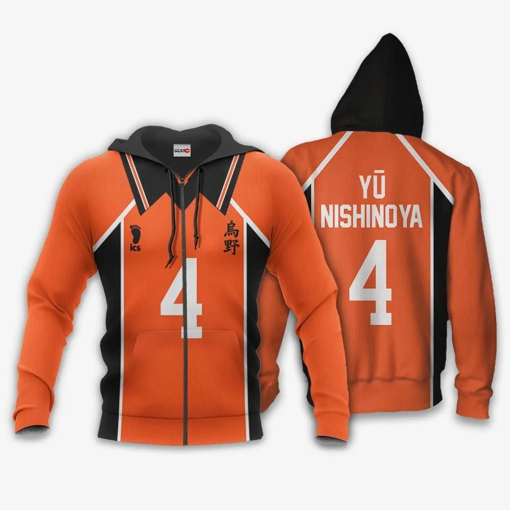 Karasuno Yu Nishinoya Uniform Costume Zip Hoodie Num 4 Haikyuu Anime