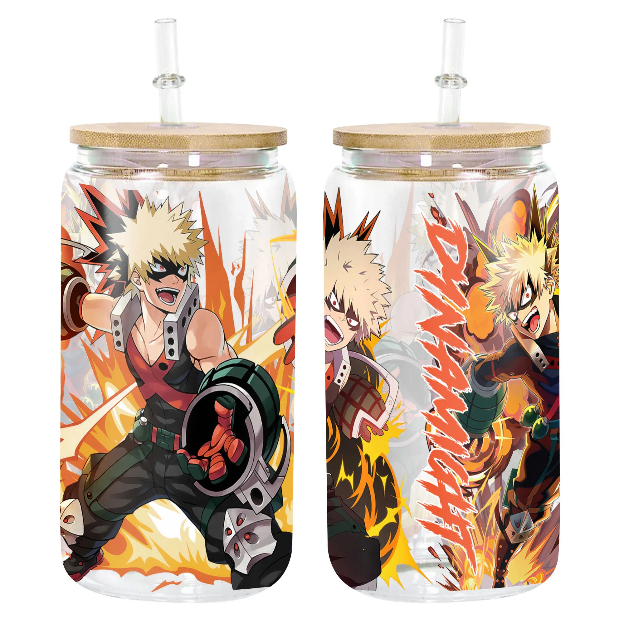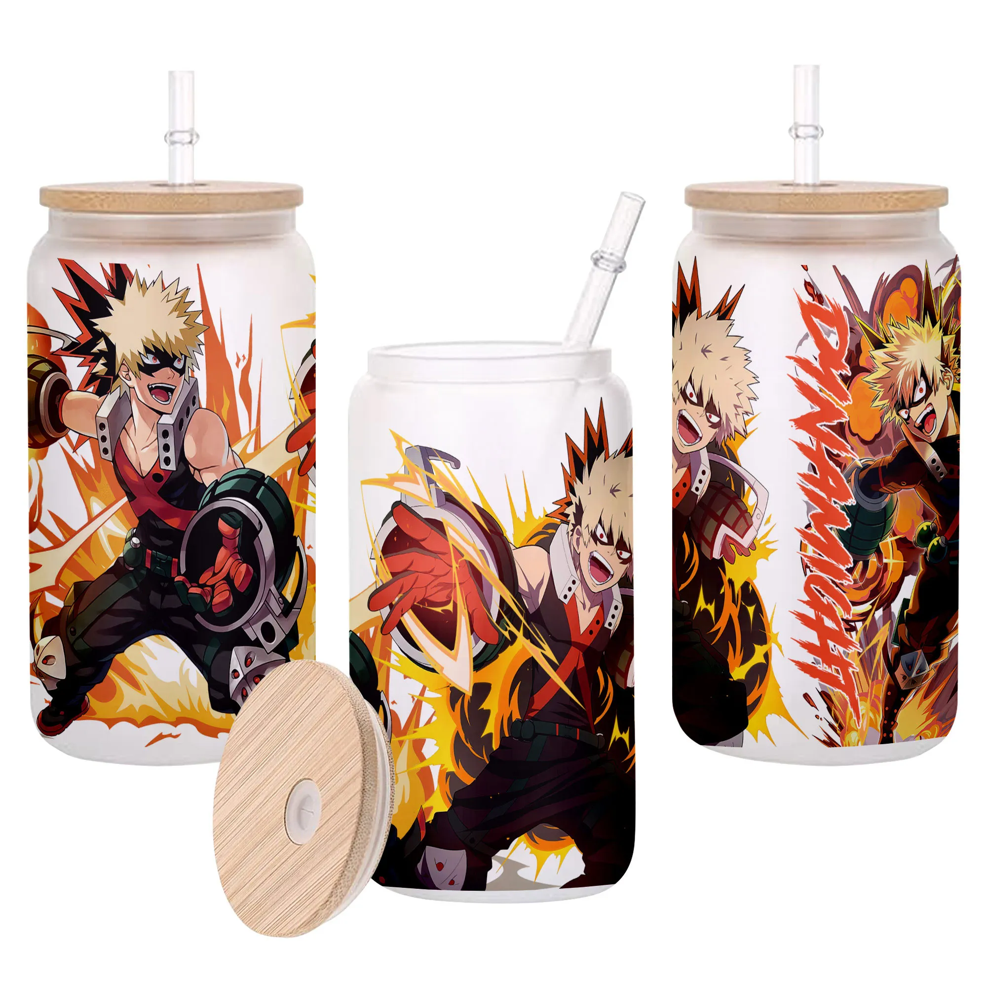 Katsuki Bakugo (Dynamight) Anime Glass Can 16oz Custom Personalized Water Bottle