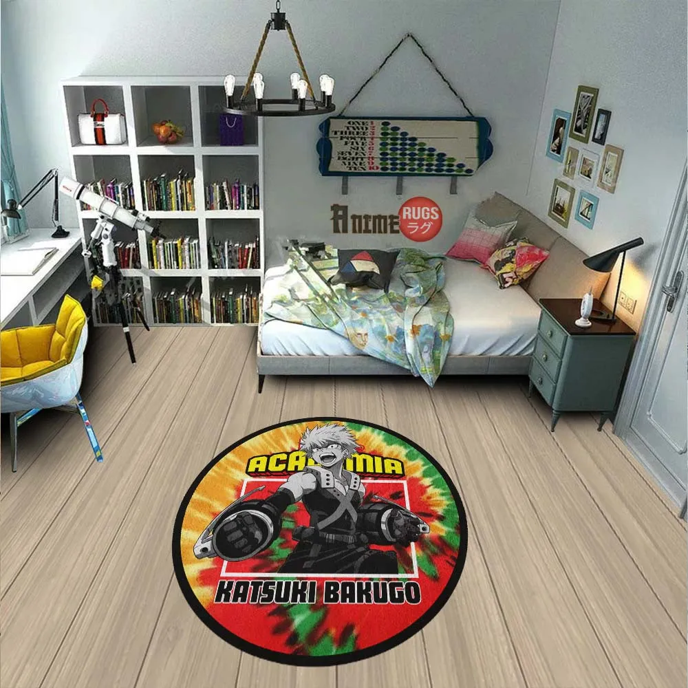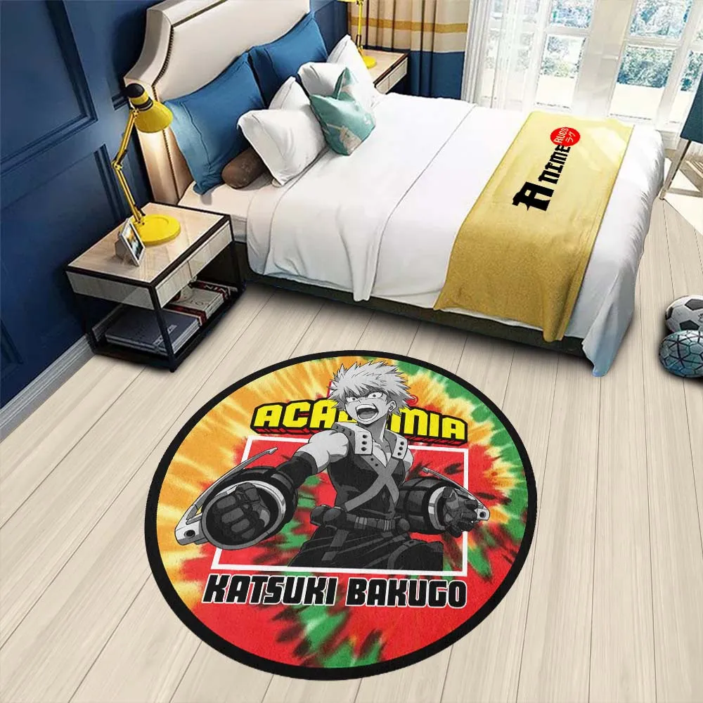 Katsuki Bakugo Round Rug Custom Tie Dye Style Anime Room Mats