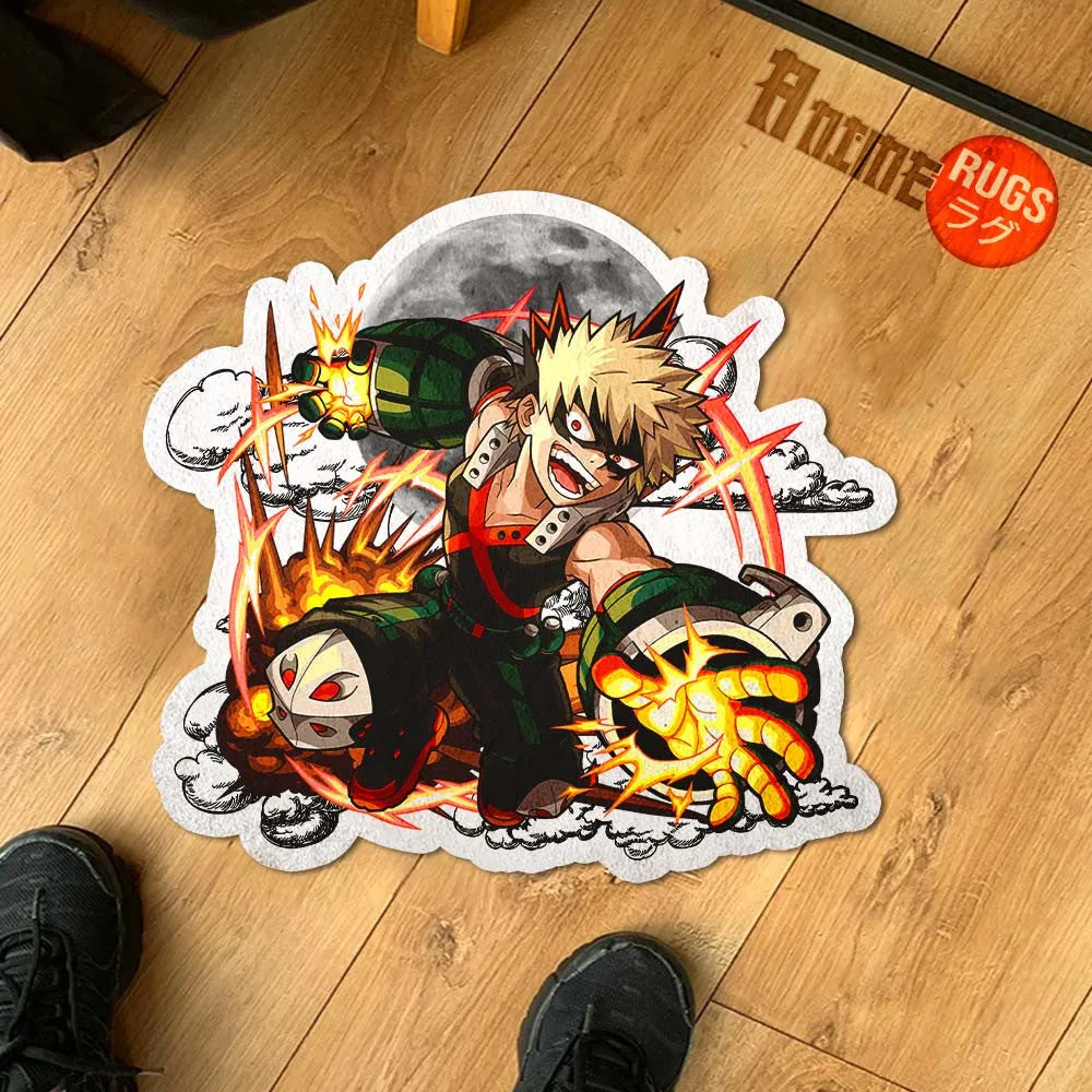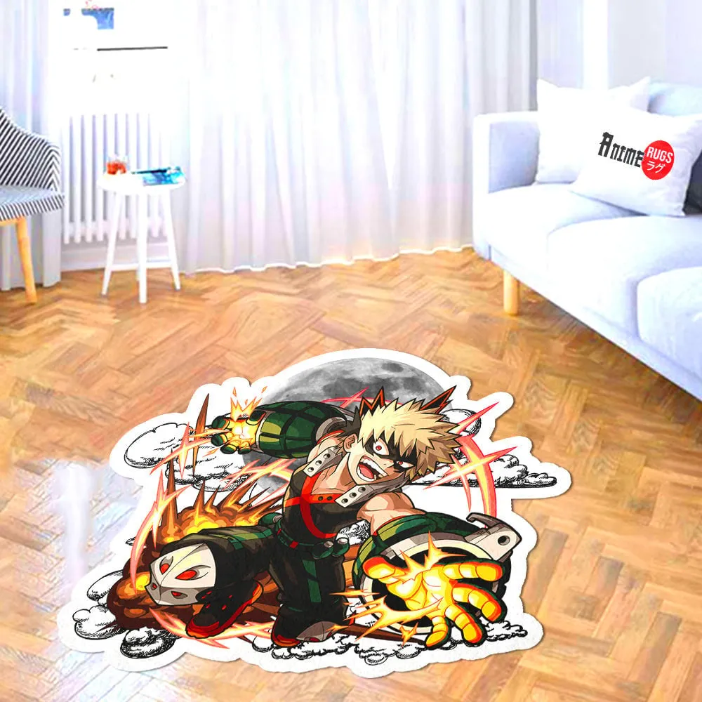 Katsuki Bakugo Shaped Rug Custom Moon Clouds Anime Room Decor