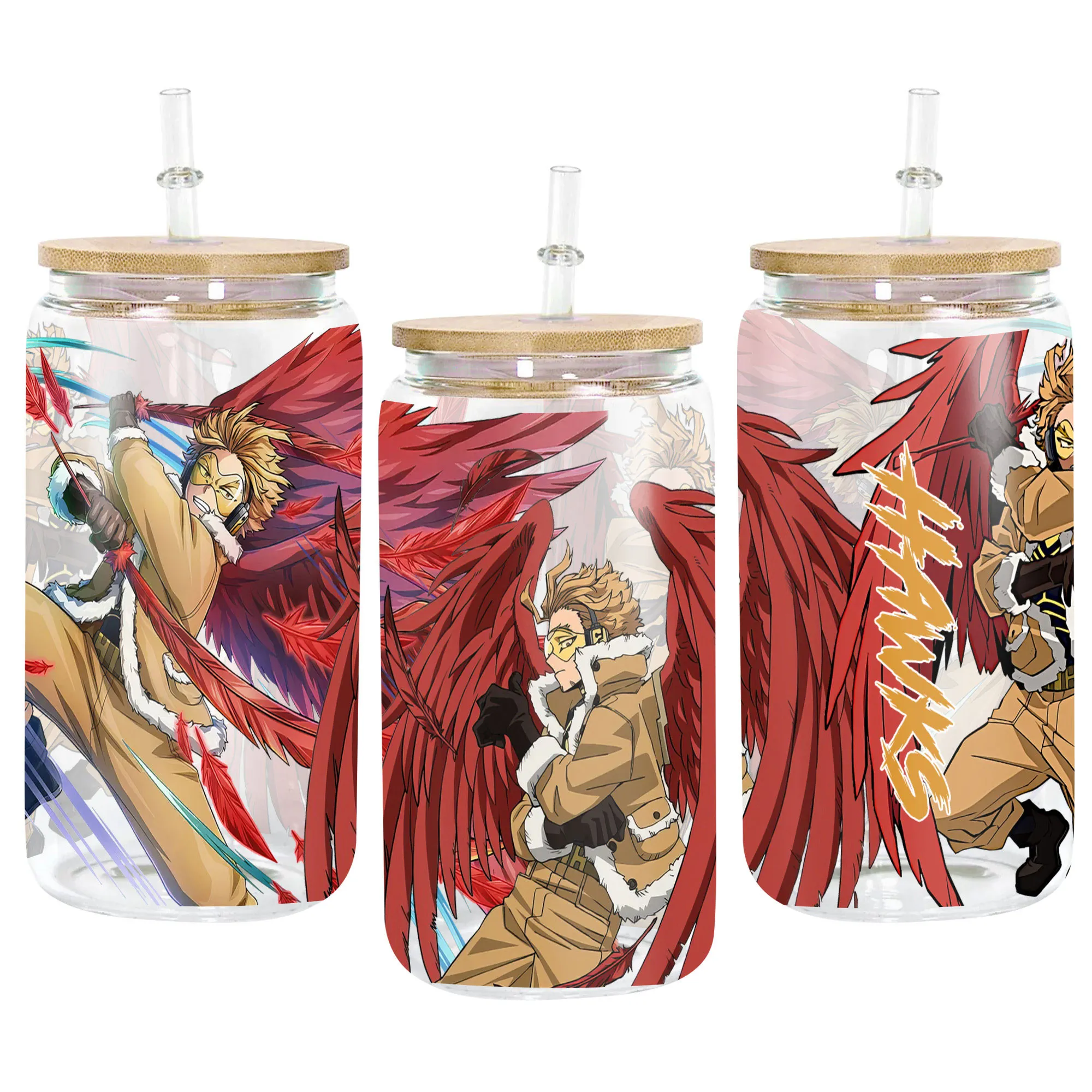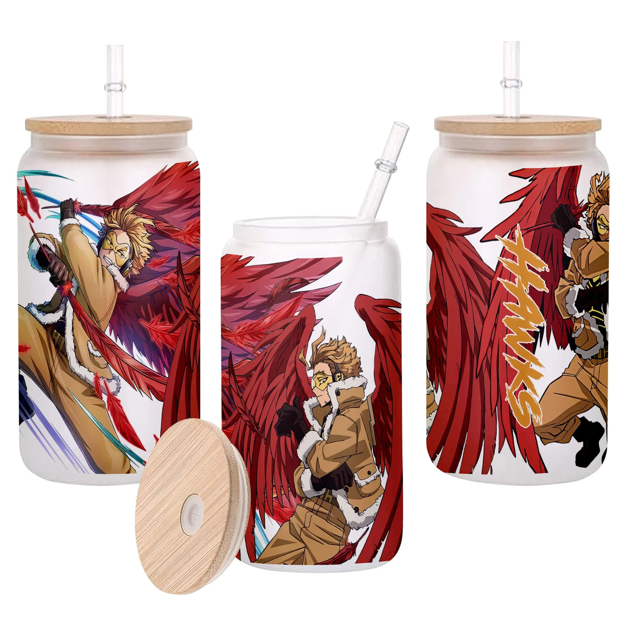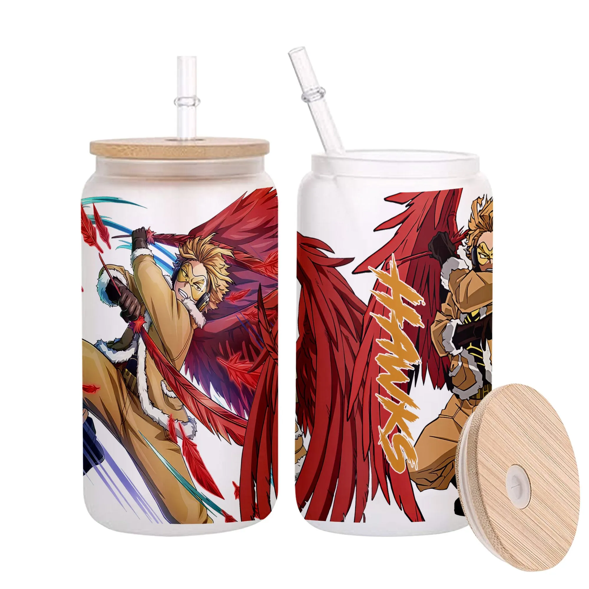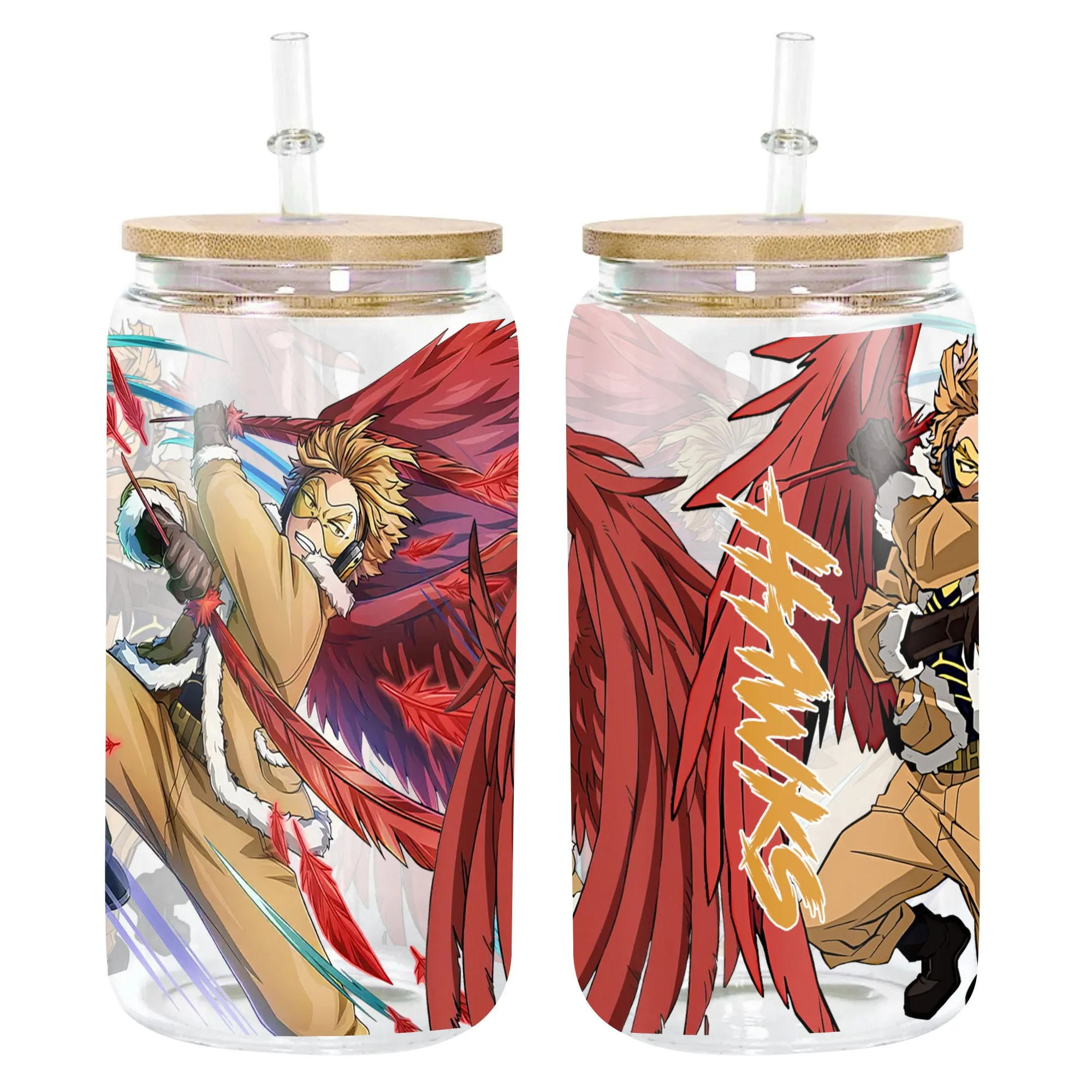 Keigo Takami (Hawks) Anime Glass Can 16oz Custom Personalized Water Bottle