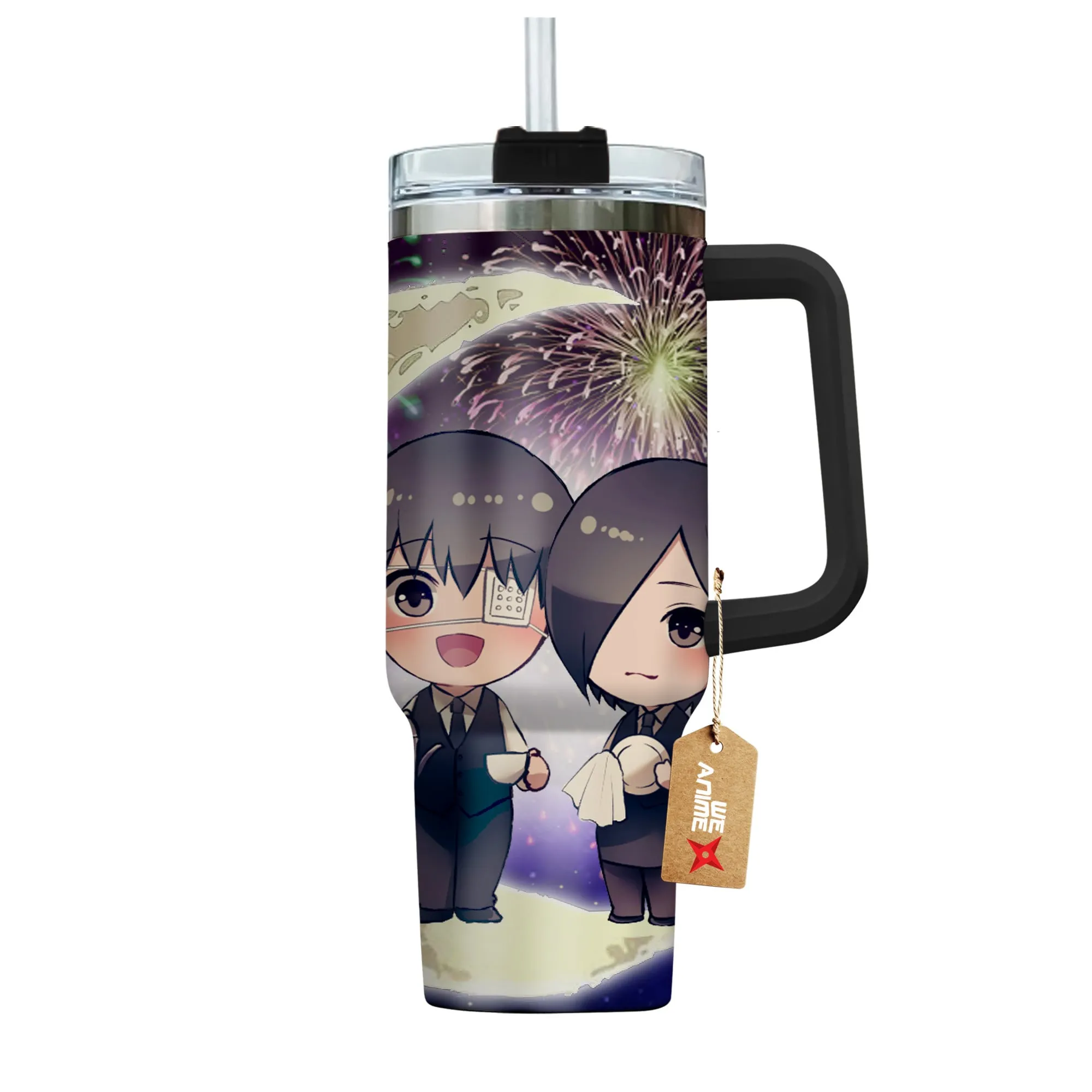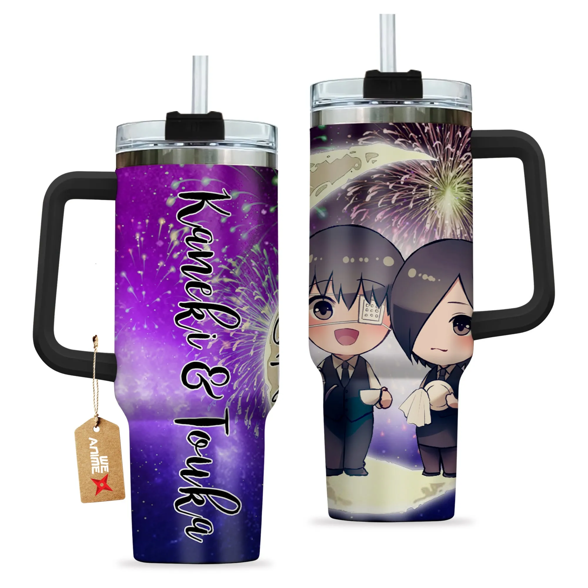 Ken & Touka 40oz Travel Tumbler With Handle Personalized I Love You To The Moon And Back Collection