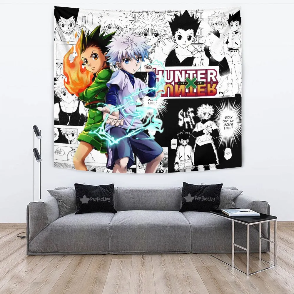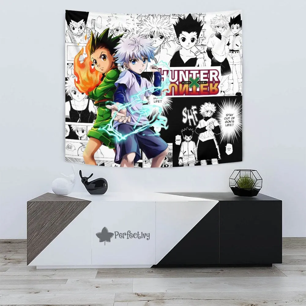 Killua Zoldyck And Gon Freecss Tapestry Custom Anime mix Manga Home Room Wall Decor