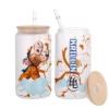 All of our Glass Can 16oz are custom-made-to-order and handcraftedwith high-quality glass material and accompanied by a convenient hard plastic straw and a wooden lid with a convenient hold for straw.