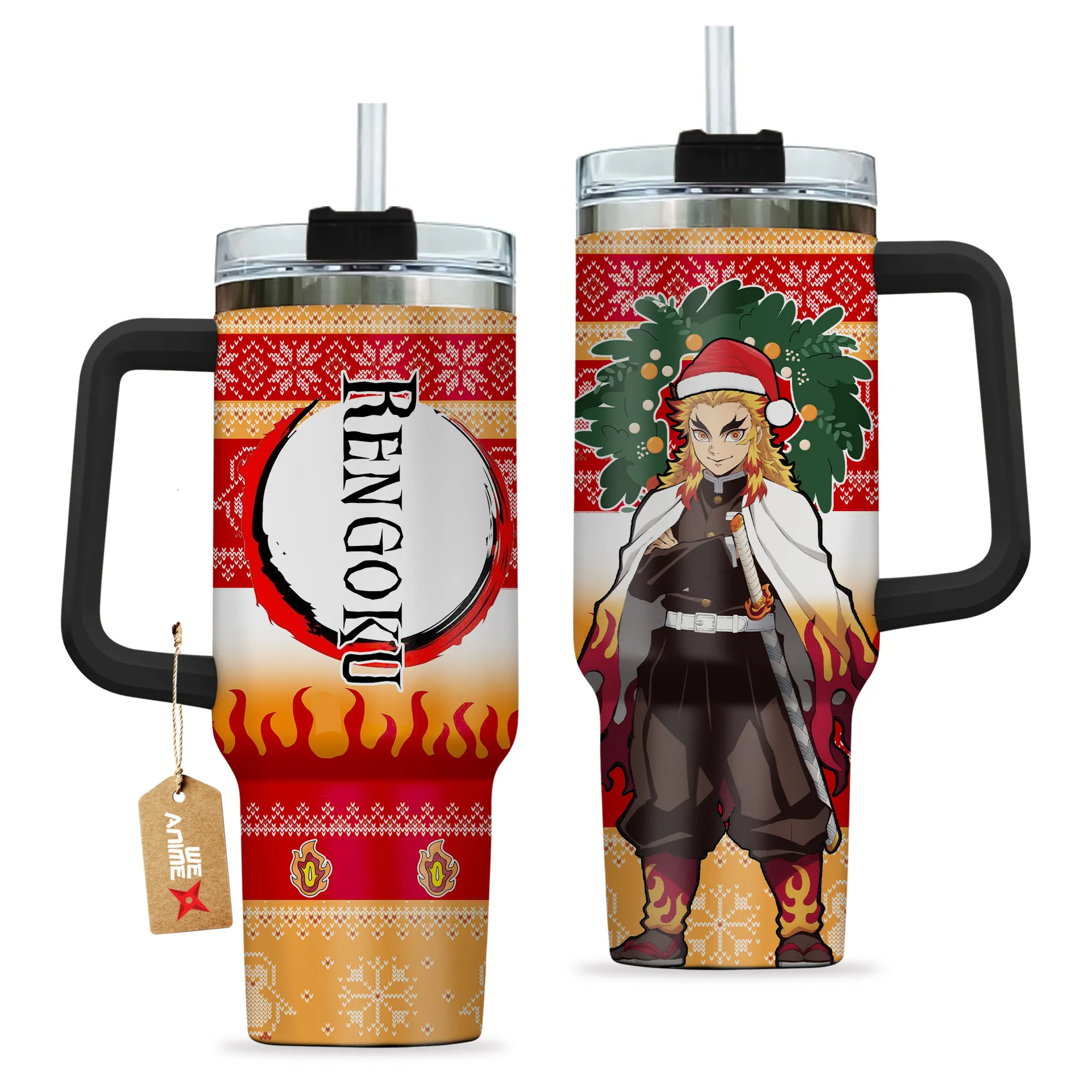 Kyojuro 40oz Travel Tumbler With Handle Custom Anime Accessories