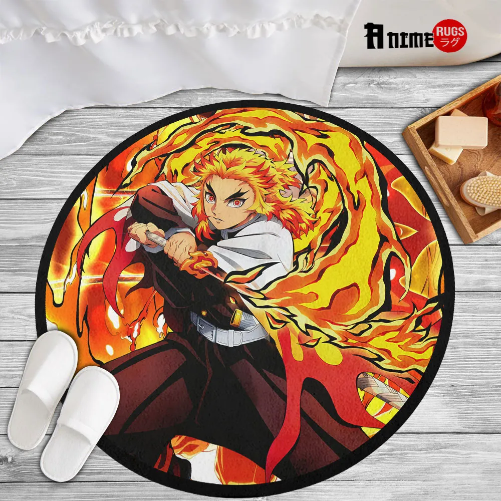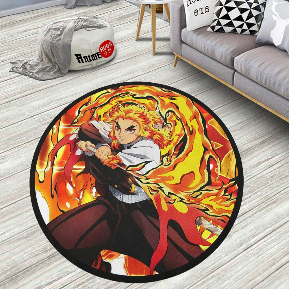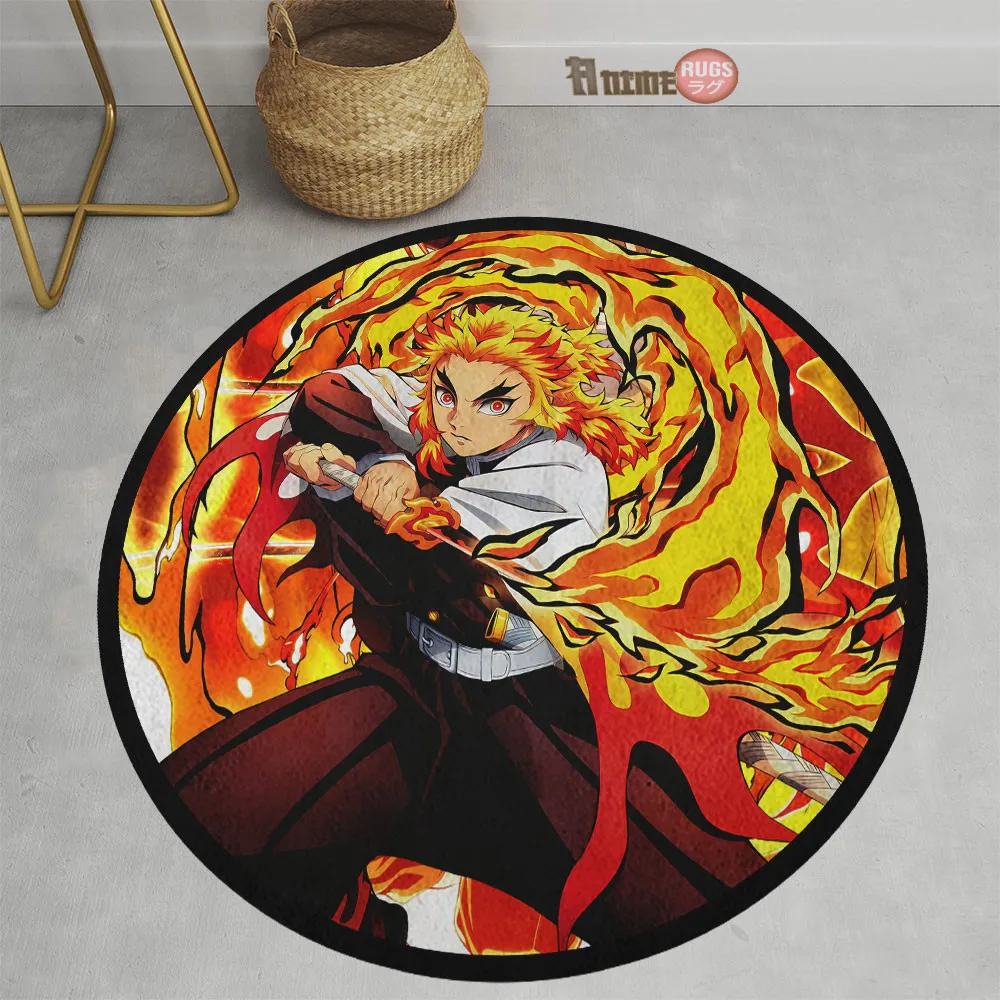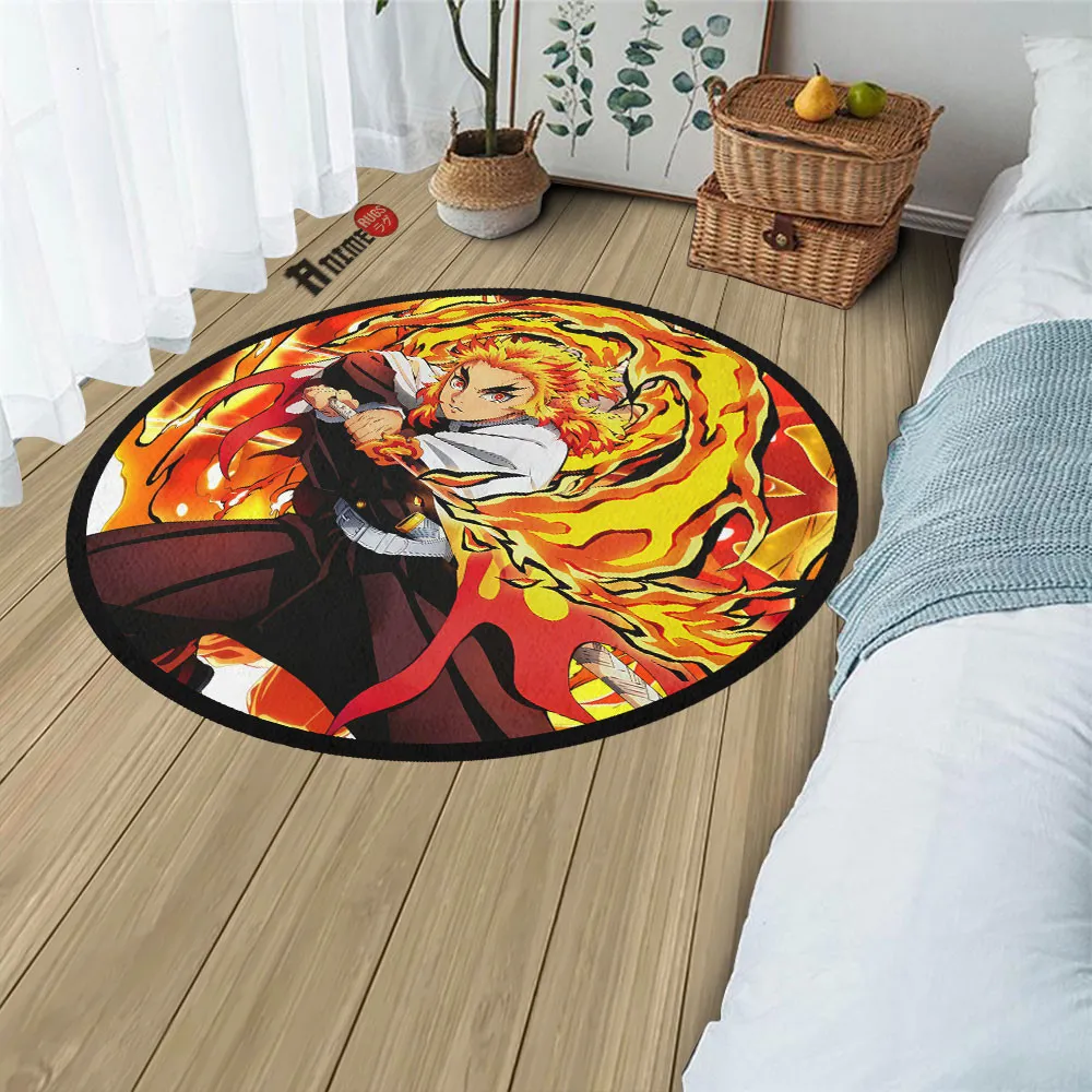 Demon Slayer Kyojuro Rengoku Round Rug Custom Anime Circle Carpet