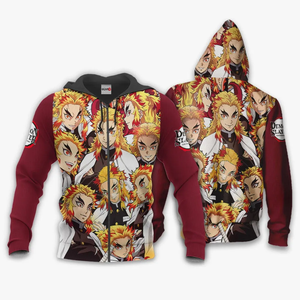 Kyojuro Rengoku Zip Hoodie Custom Anime