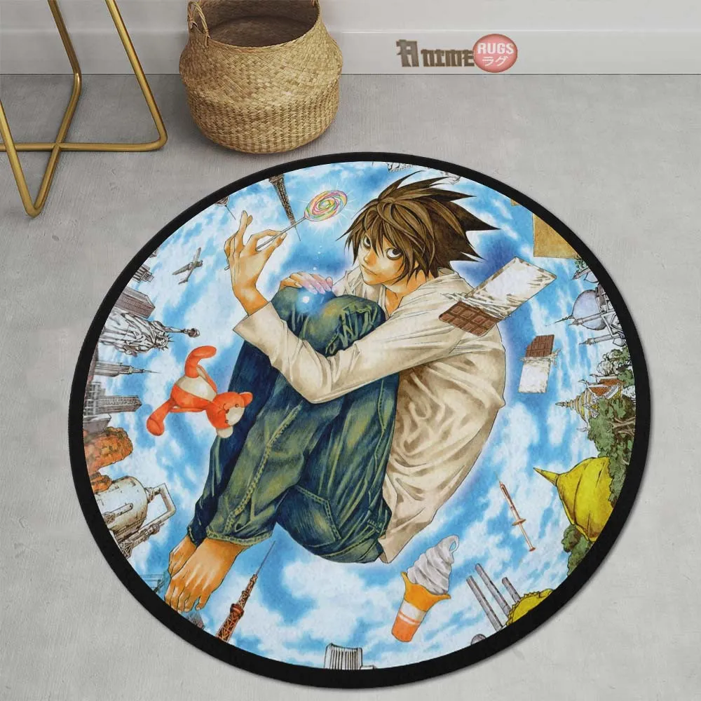 L Lawliet Poster Style Round Rug Custom Death Note Anime Room Mats