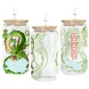 All of our Glass Can 16oz are custom-made-to-order and handcraftedwith high-quality glass material and accompanied by a convenient hard plastic straw and a wooden lid with a convenient hold for straw.