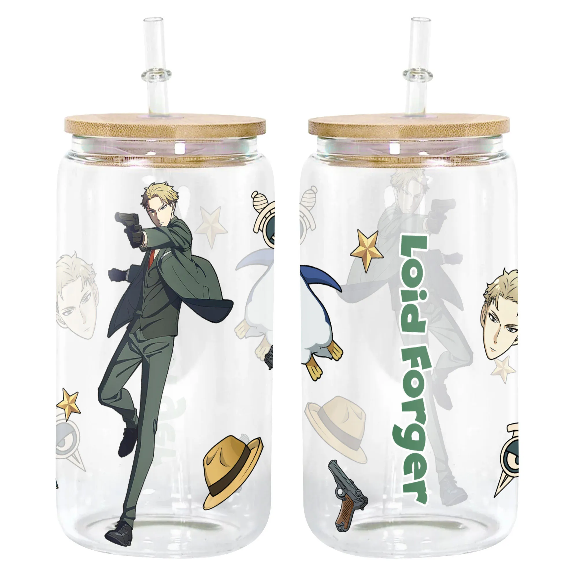Loid Forger Anime Glass Can 16oz Custom Personalized Water Bottle