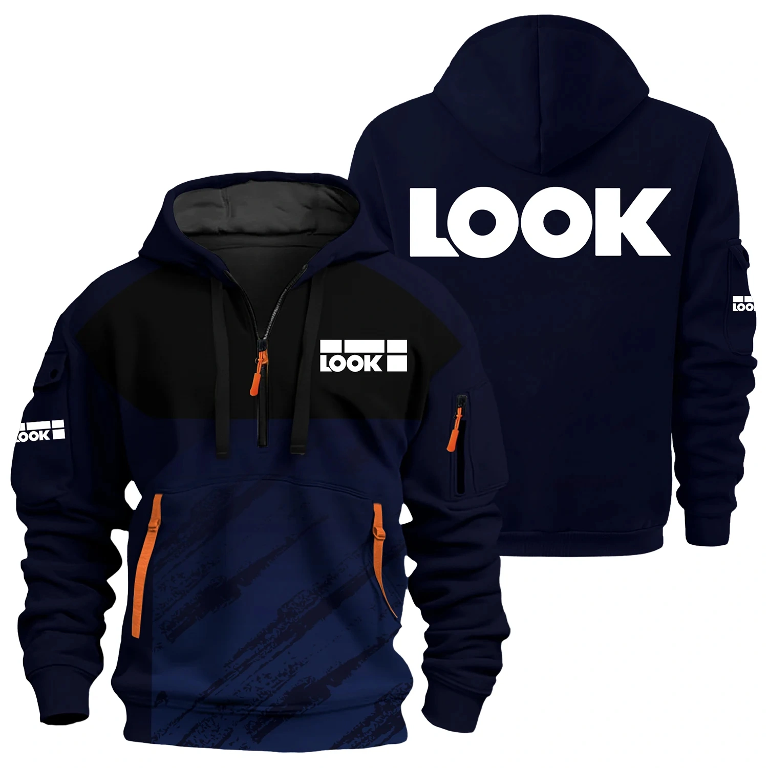 Elevate your wardrobe with our Look hoodie half zipper, meticulously crafted for both function and fashion. Featuring long sleeves for added warmth and coverage, this hoodie keeps you comfortable in cooler conditions. The hooded neckline adds a modern, trendy touch to the ensemble, making it a perfect choice for those who appreciate a contemporary look.