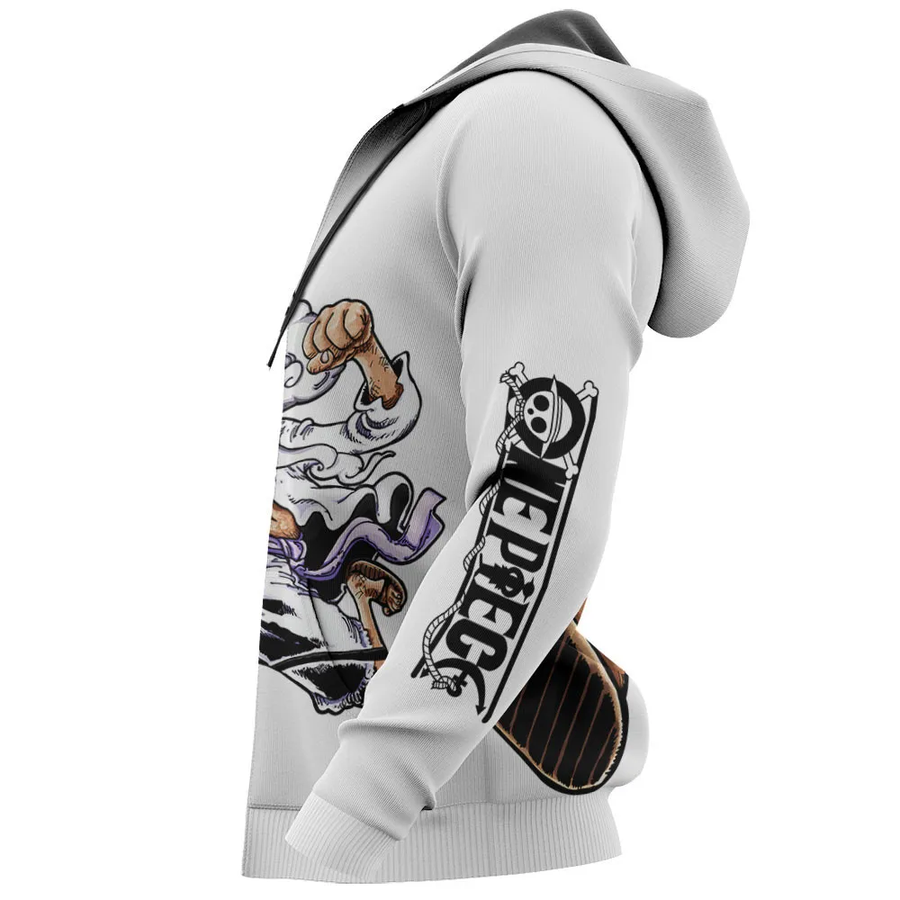 Luffy Gear 5 White Hair Zip Hoodie One Pieces Streetstyle