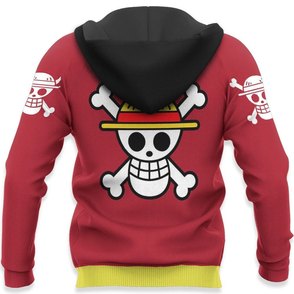 Luffy Uniform Costume Zip Hoodie Straw Hat One Piece Anime