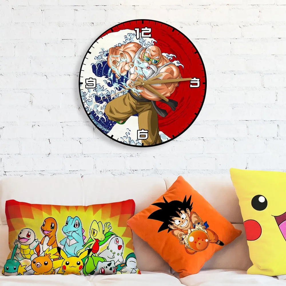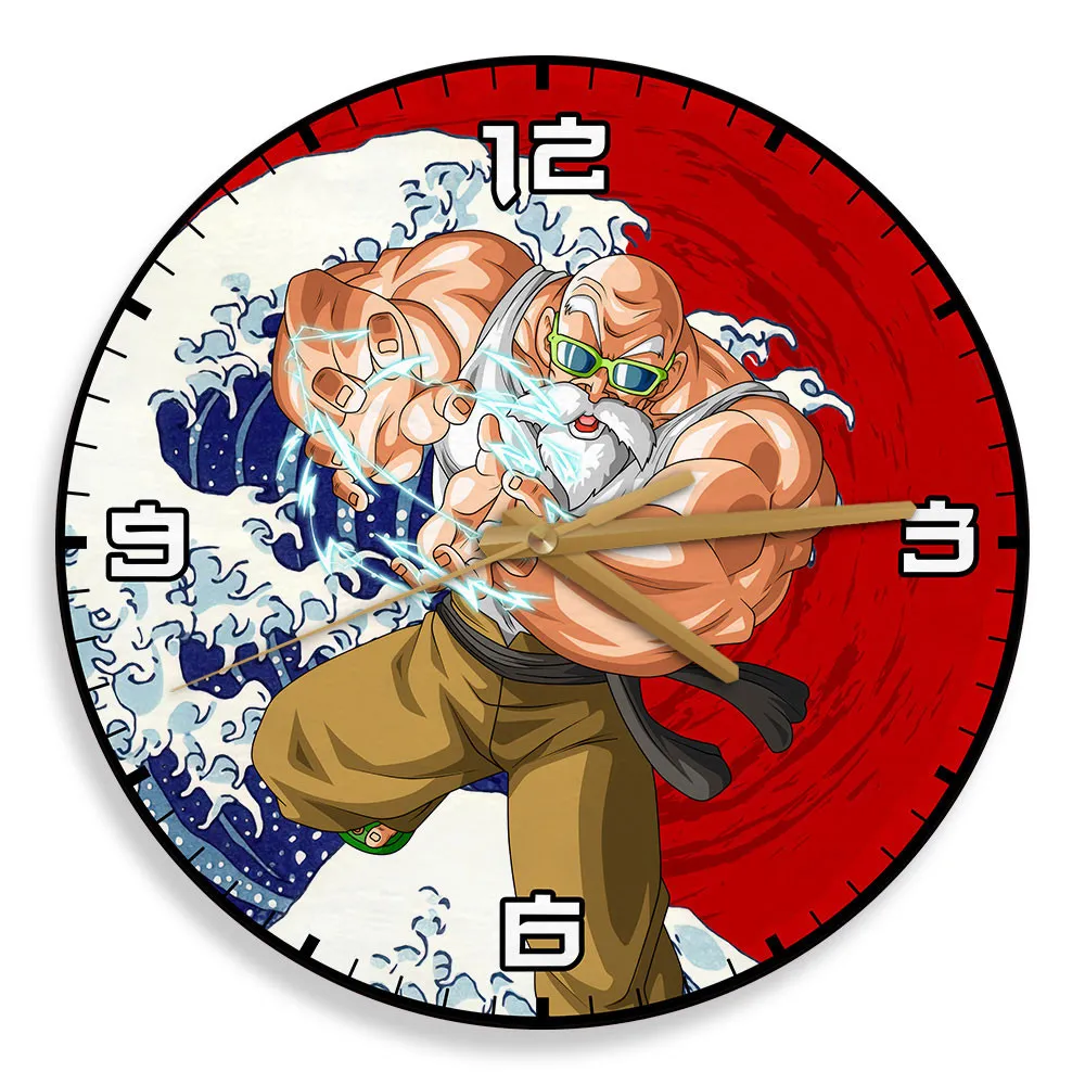 Master Roshi Kanagawa Wave Red Sun Anime Wooden Wall Clock