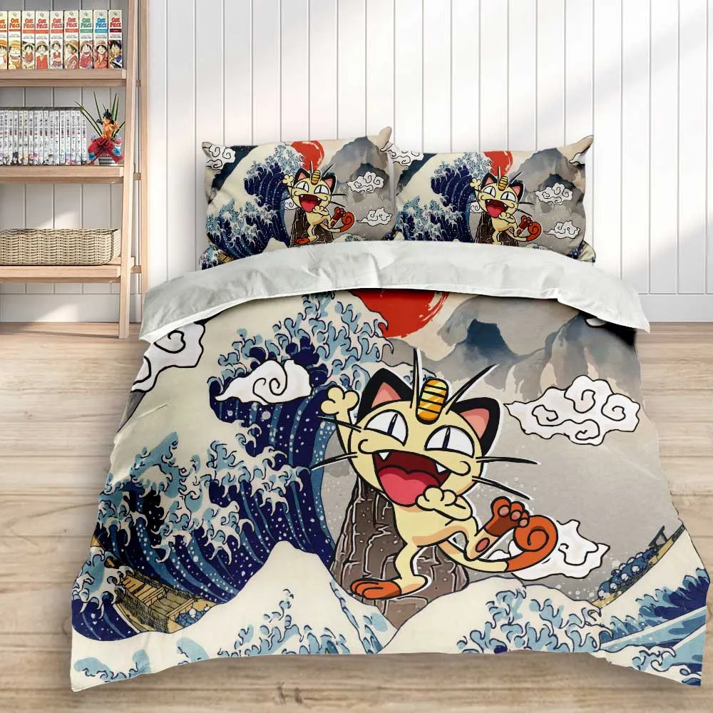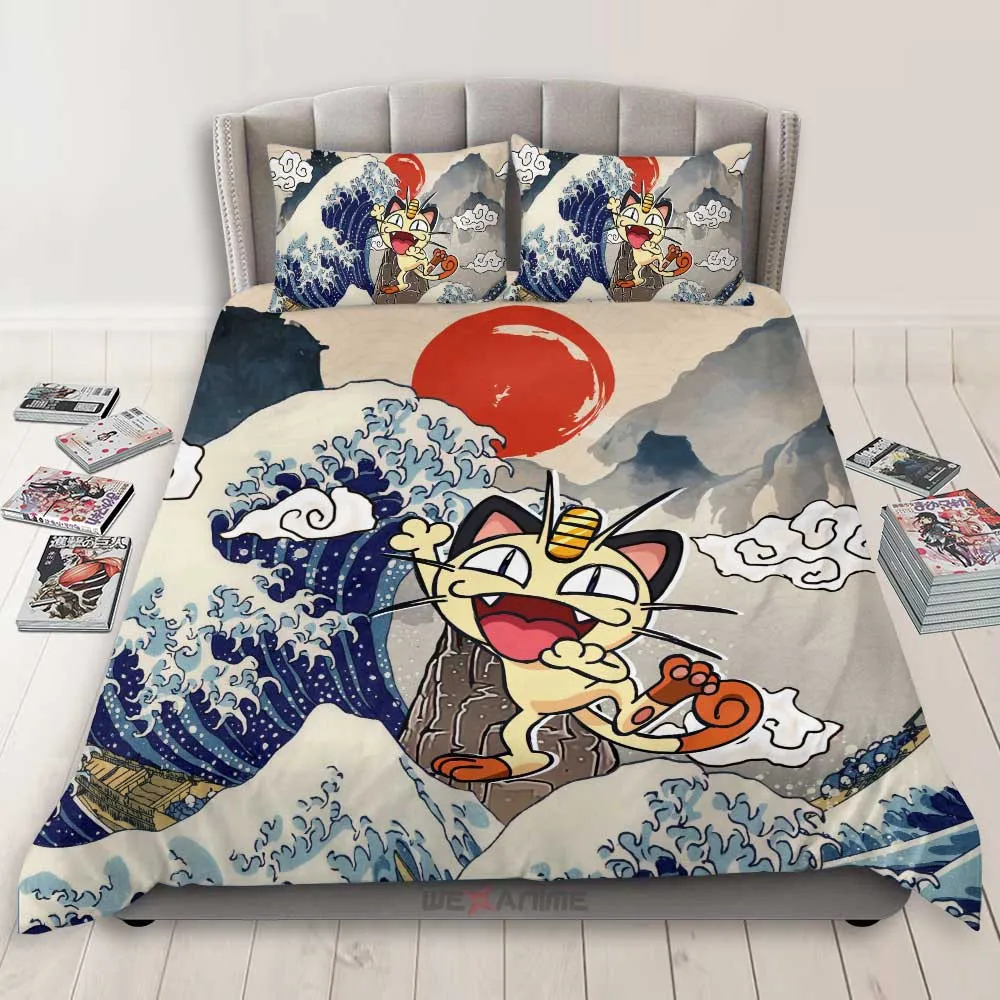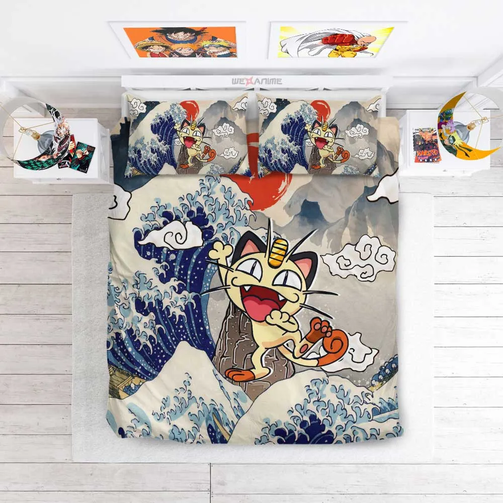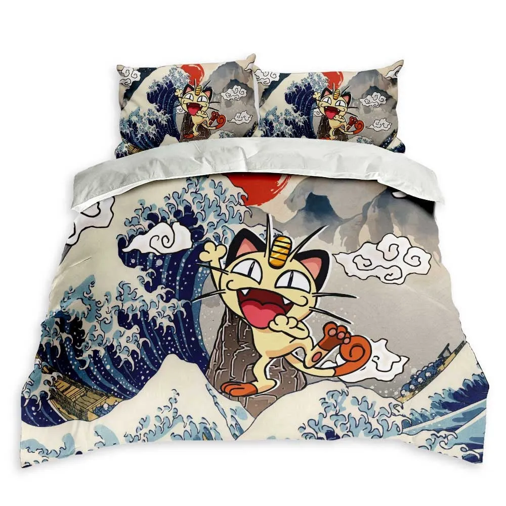 Kanagawa Great Wave Meowth Blanket Fleece Custom Bedding
