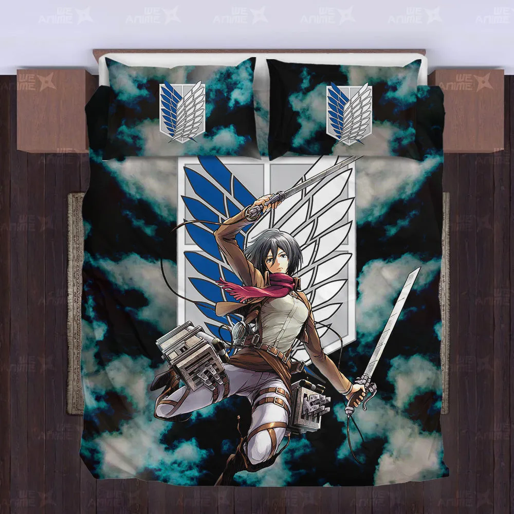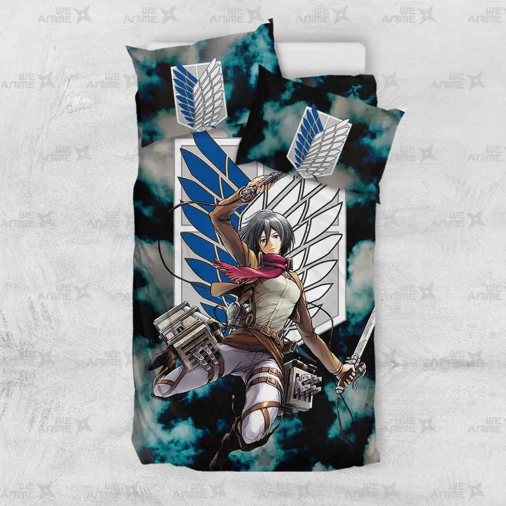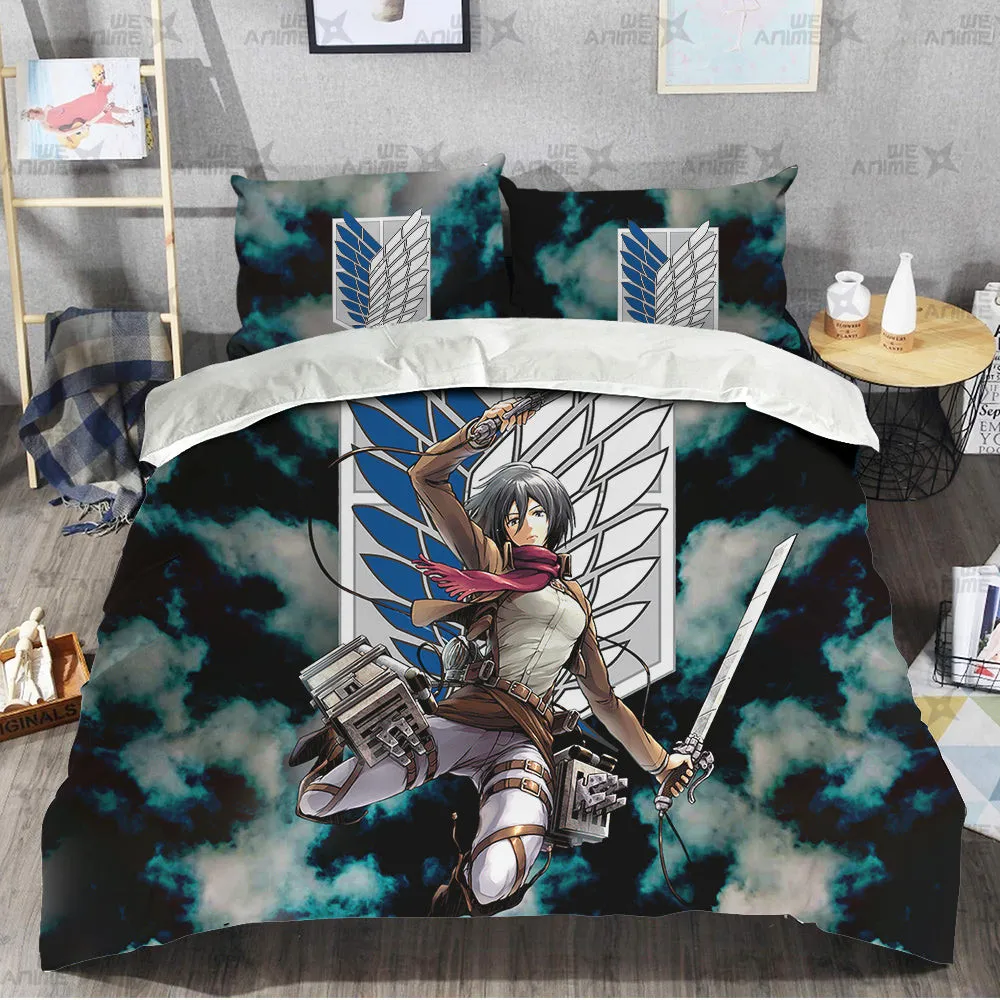Mikasa Ackerman Bedding Set Custom Attack On Titan Anime Bedroom