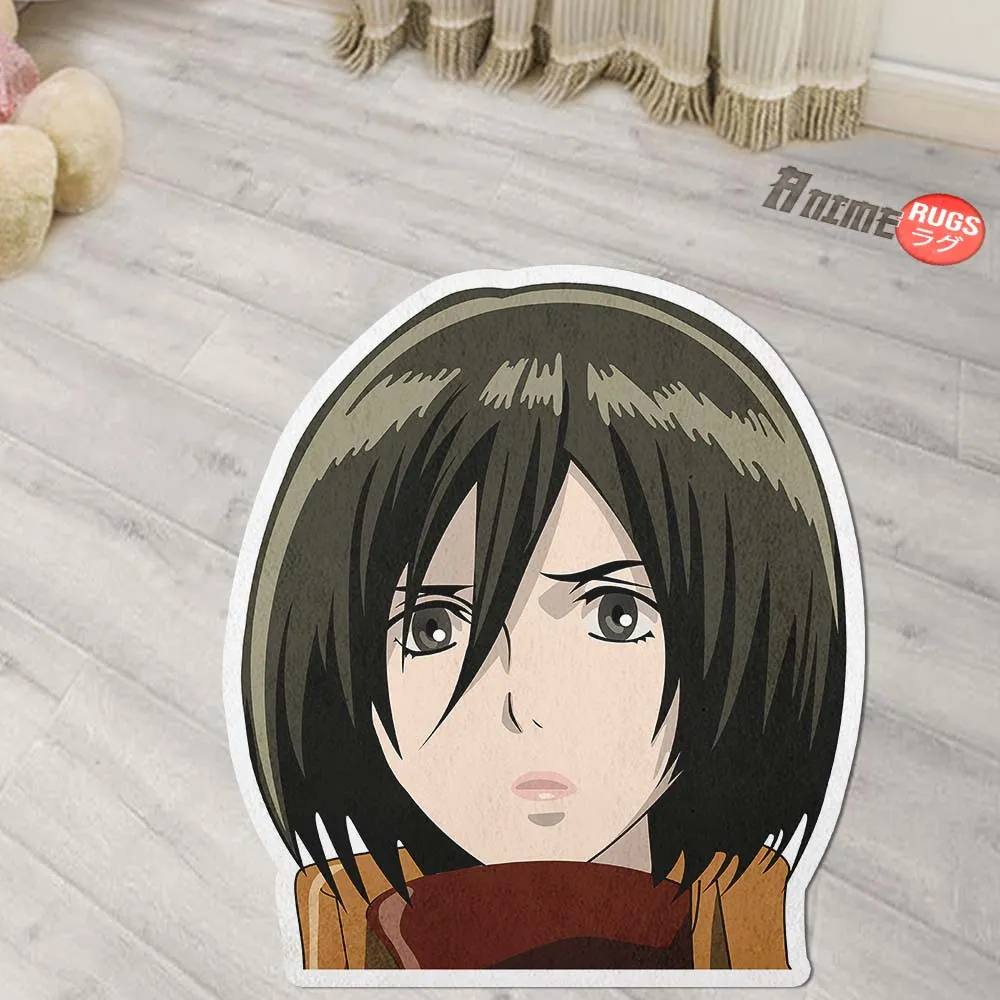 Mikasa Ackerman Shaped Rug Custom Attack On Titan Anime Room Decor Mat Quality Carpet
