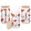 All of our Glass Can 16oz are custom-made-to-order and handcraftedwith high-quality glass material and accompanied by a convenient hard plastic straw and a wooden lid with a convenient hold for straw.
