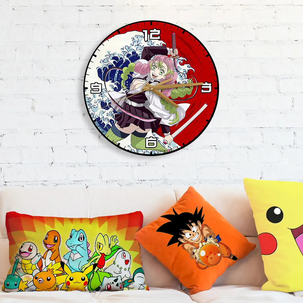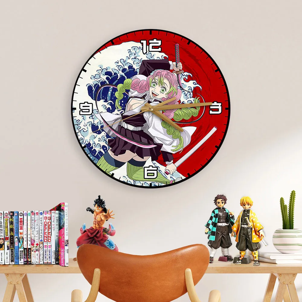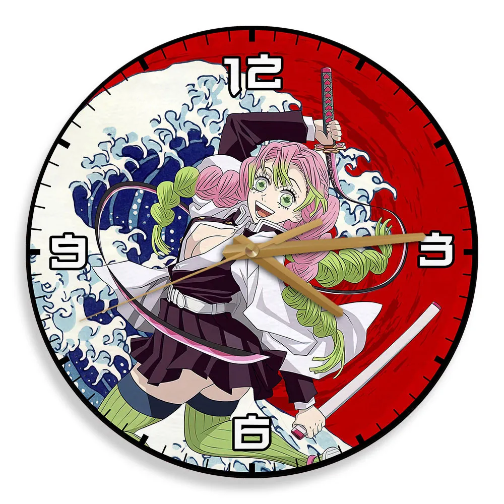 Mitsuri Kanroji Kanagawa Wave Red Sun Wooden Clock Anime Wall Clock