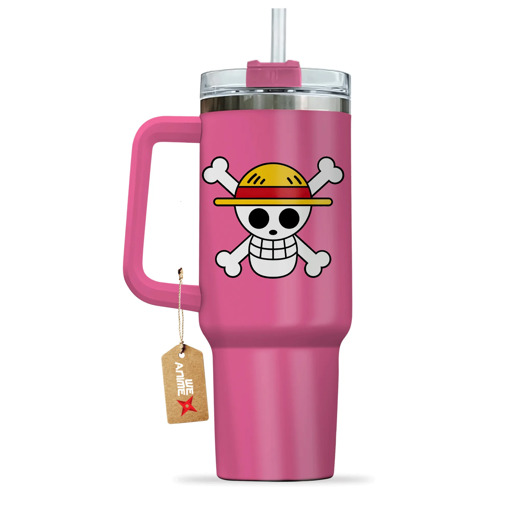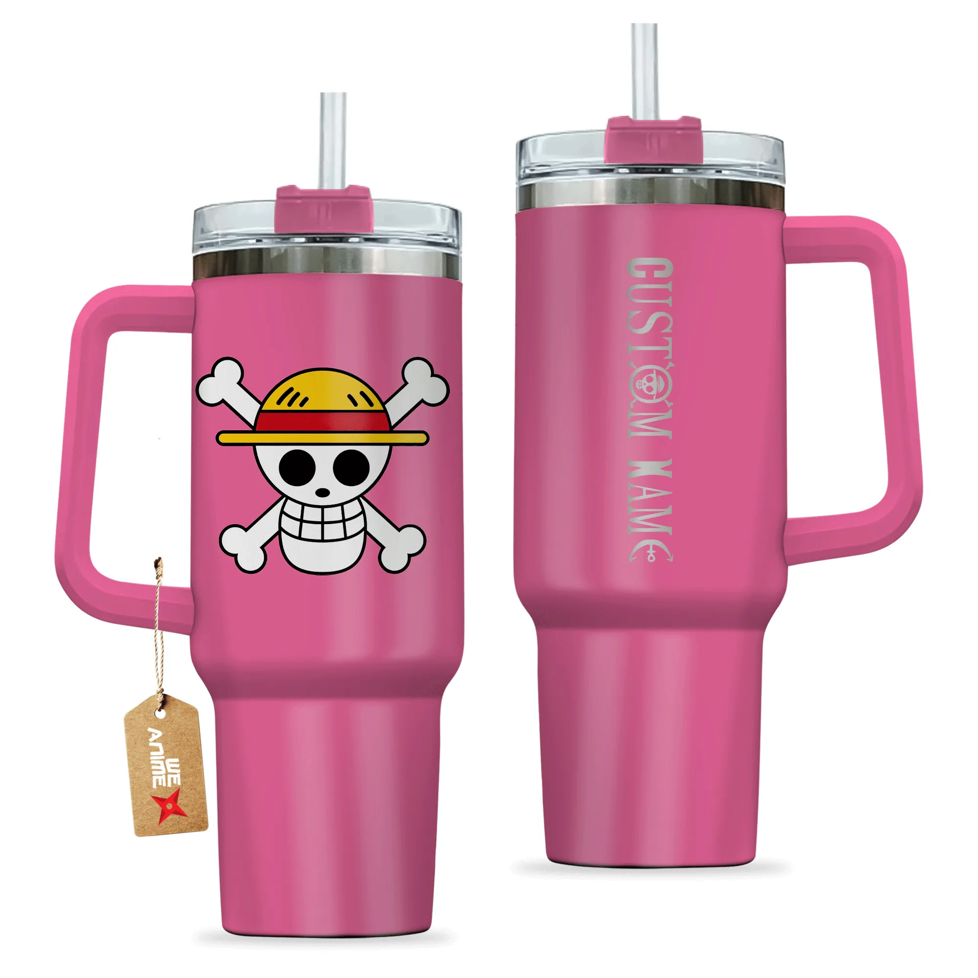 Monkey D. Luffy 40oz Pink Valentines Tumbler With Handle Personalized Anime Cup
