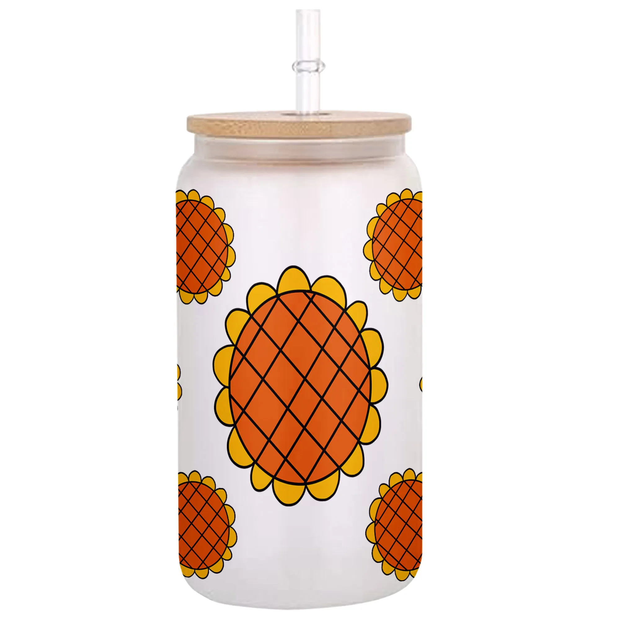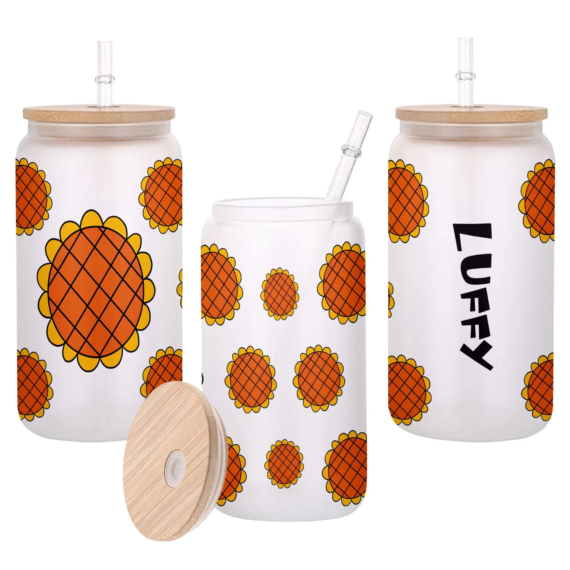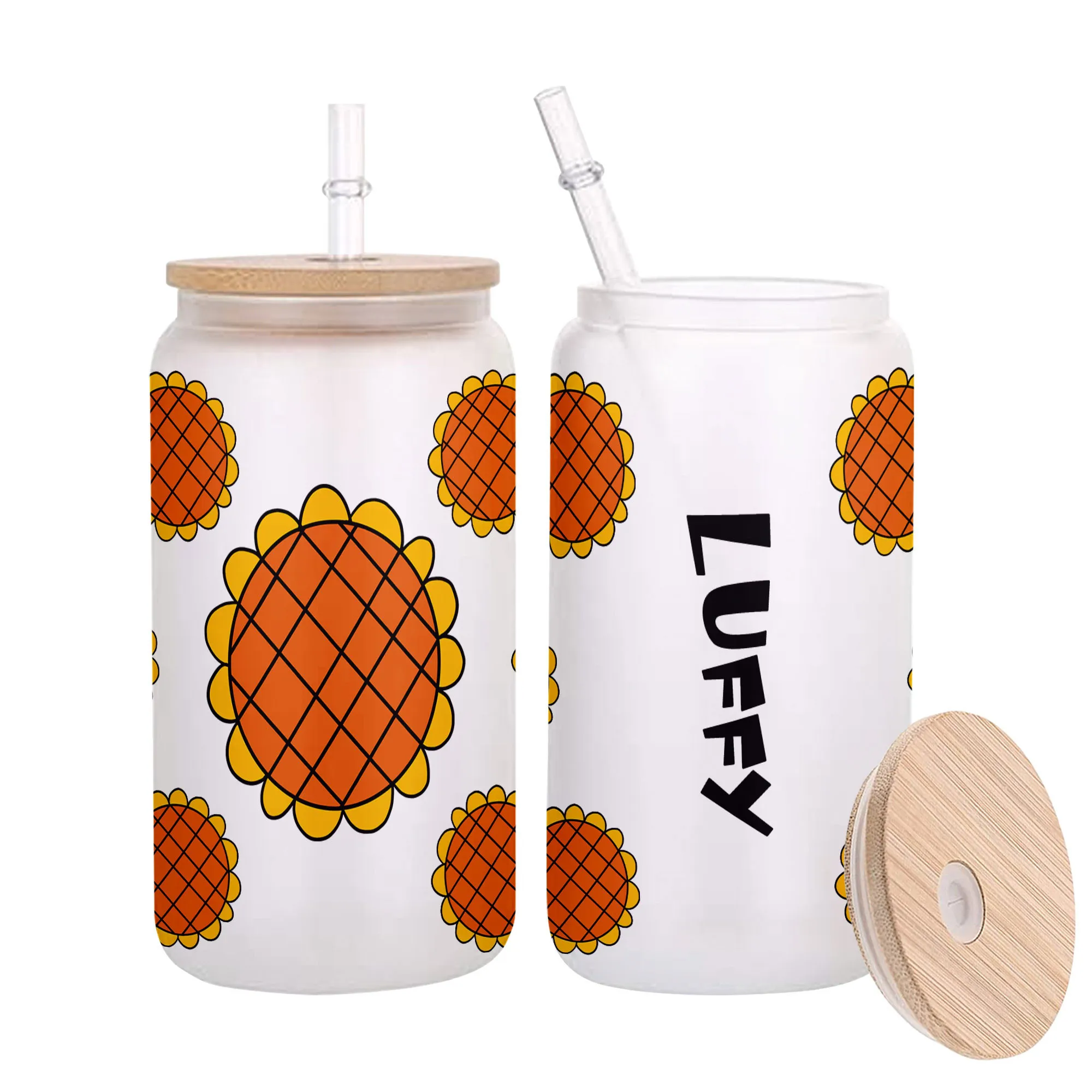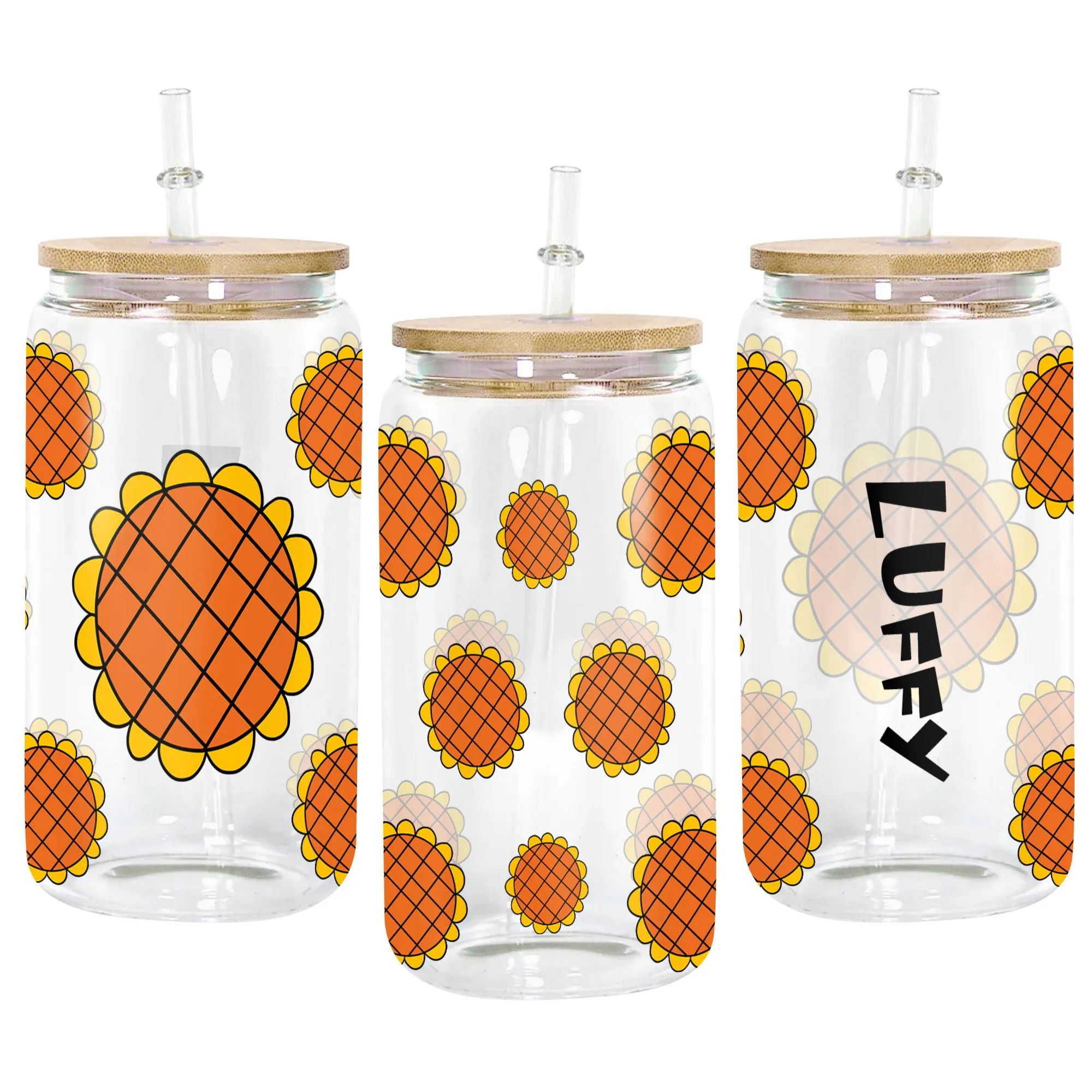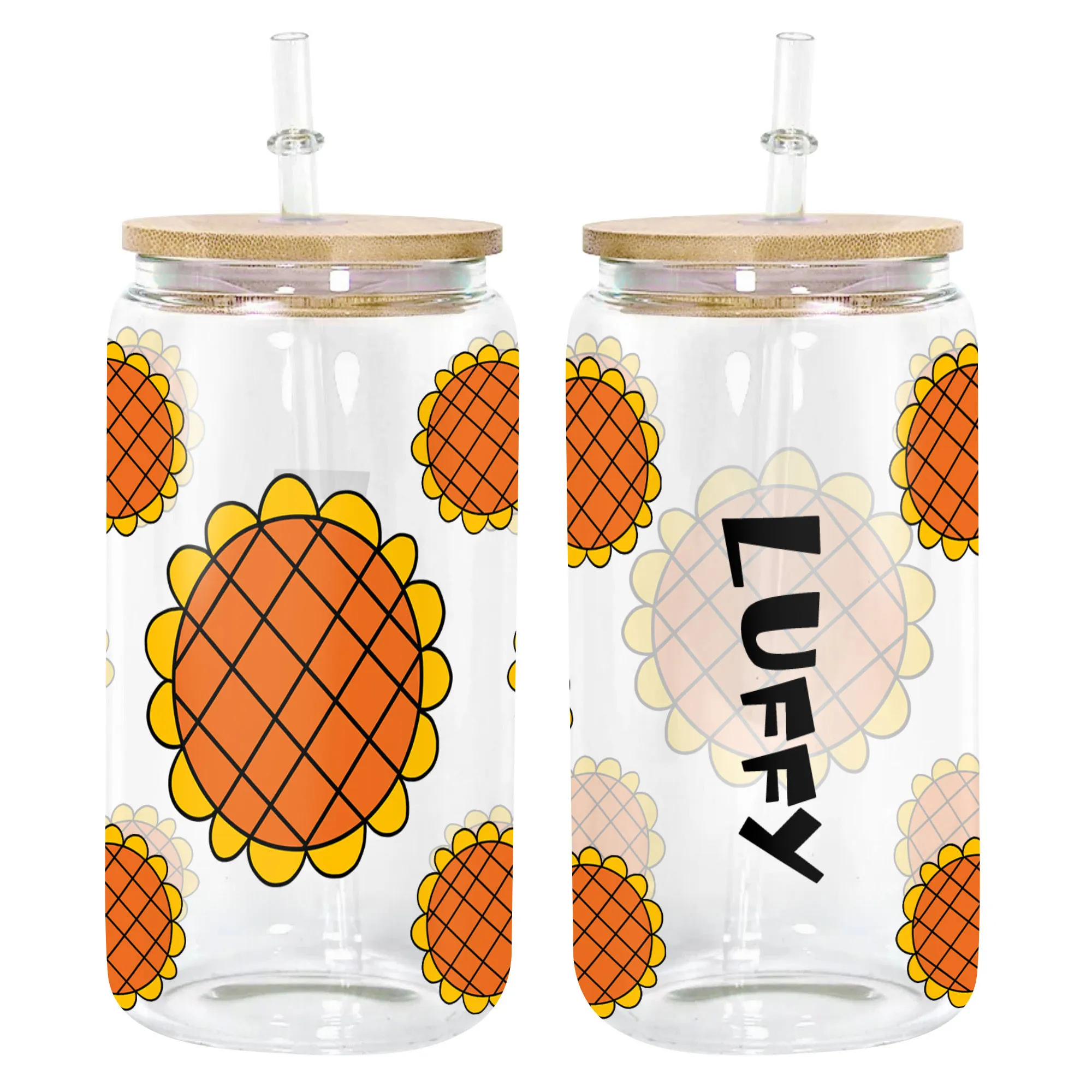 All of our Glass Can 16oz are custom-made-to-order and handcraftedwith high-quality glass material and accompanied by a convenient hard plastic straw and a wooden lid with a convenient hold for straw.
