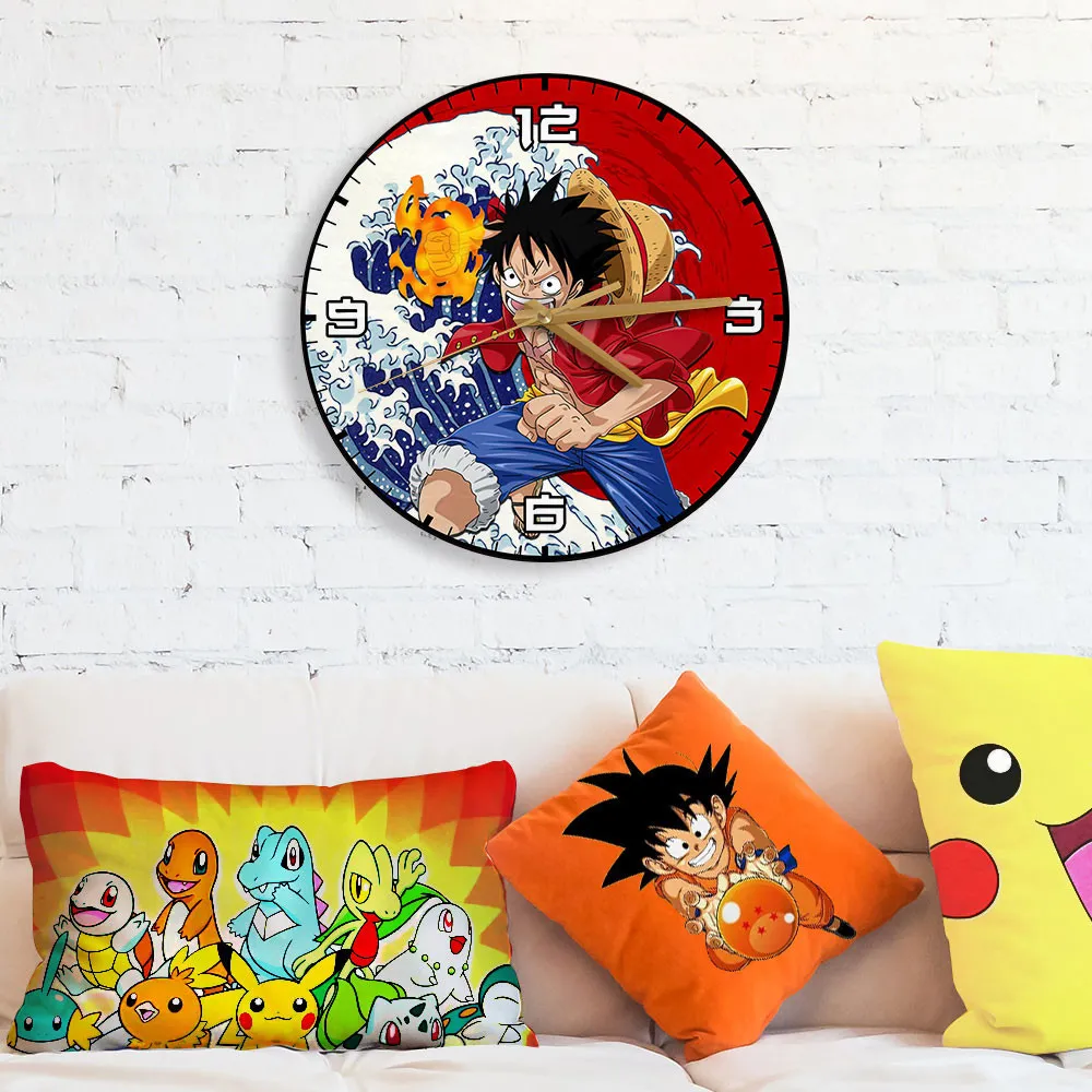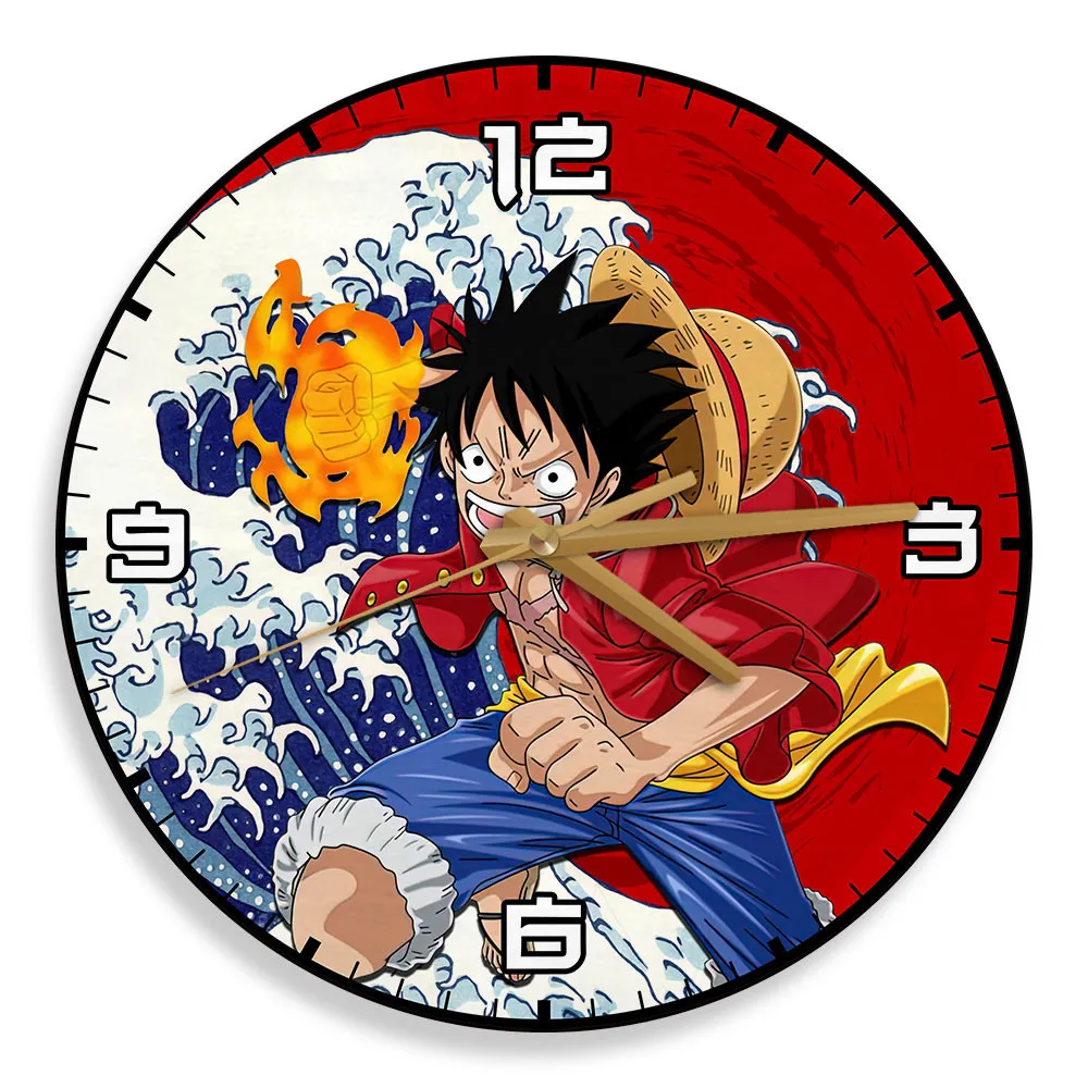Monkey D.Luffy Kanagawa Wave Red Sun Wooden Clock Anime Wall Clock