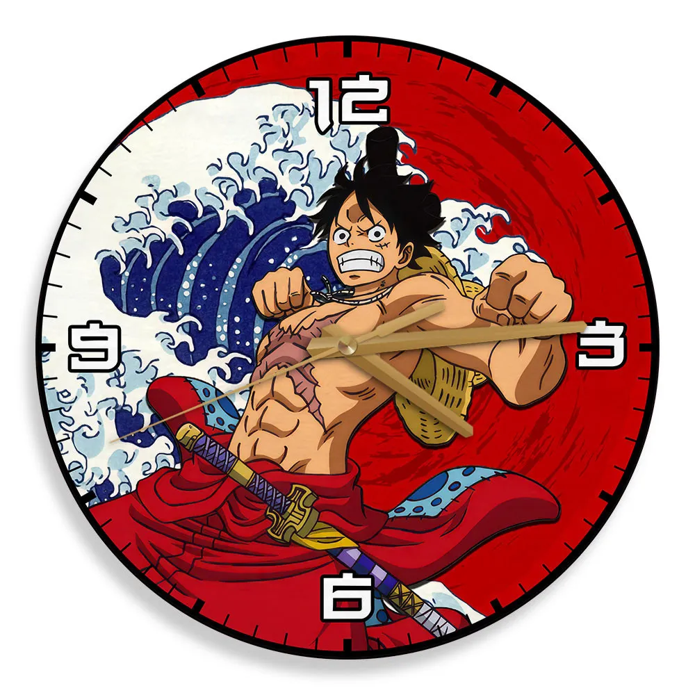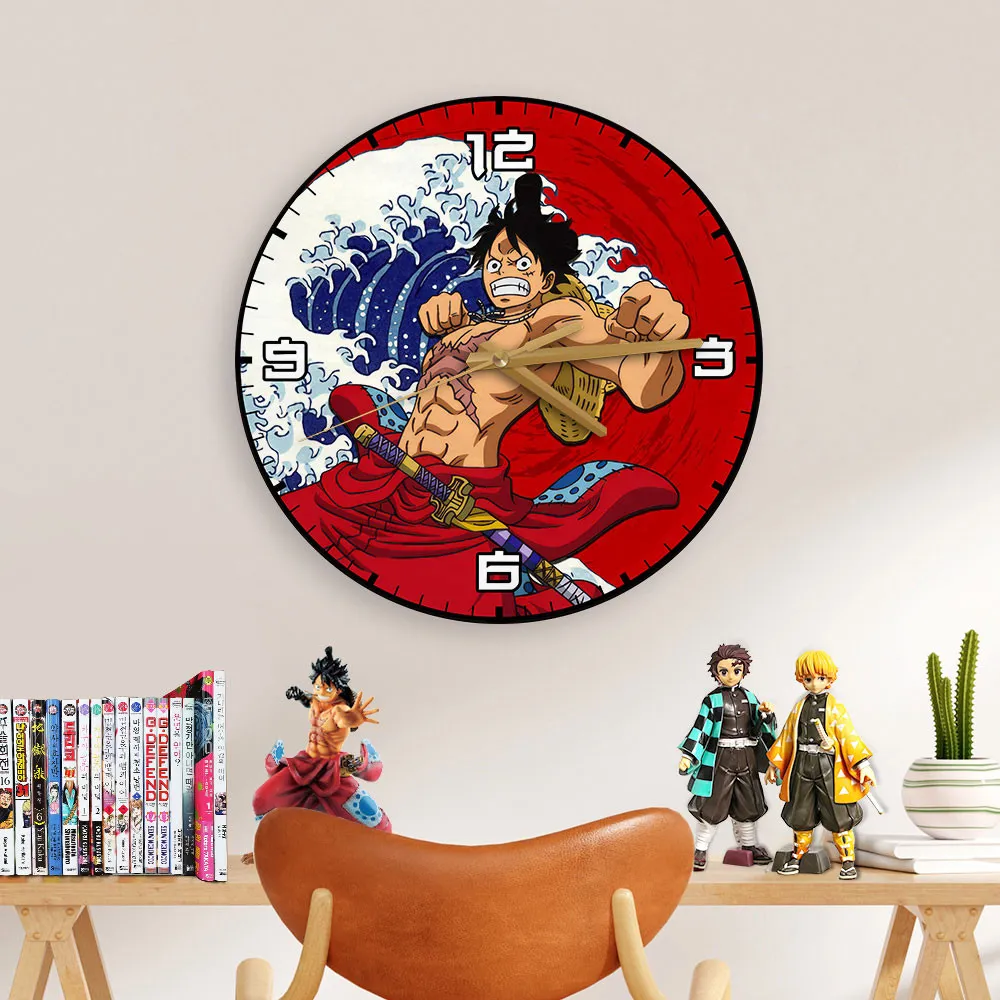 Monkey D.Luffy Wano Arc Kanagawa Wave Red Sun Wooden Clock Anime Wall Clock