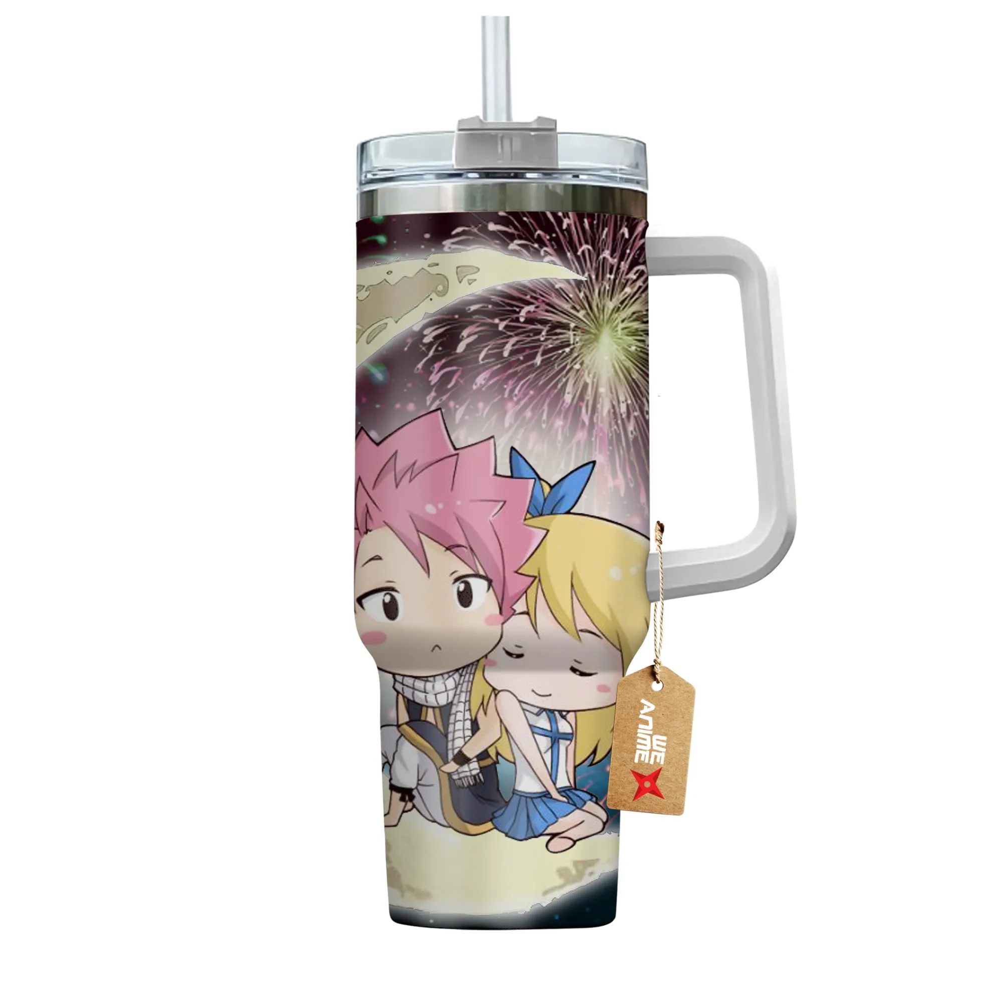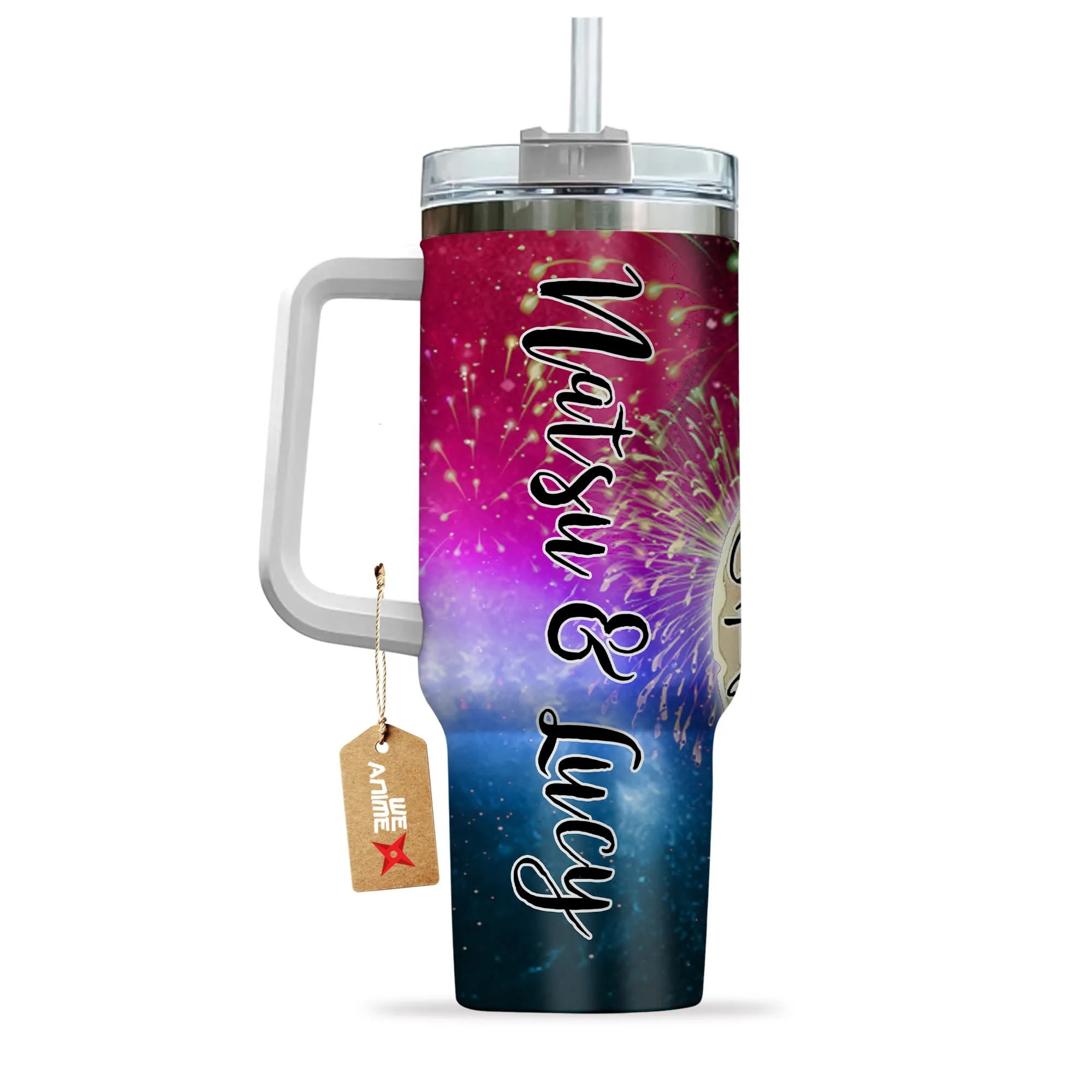 Natsu & Lucy 40oz Travel Tumbler With Handle Personalized I Love You To The Moon And Back Collection