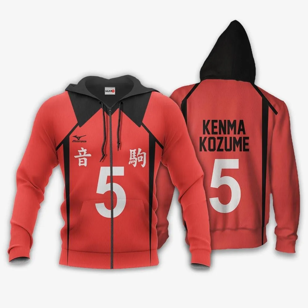 Nekoma Kenma Kozume Zip Hoodie Uniform Costume Num 5 Haikyuu Anime