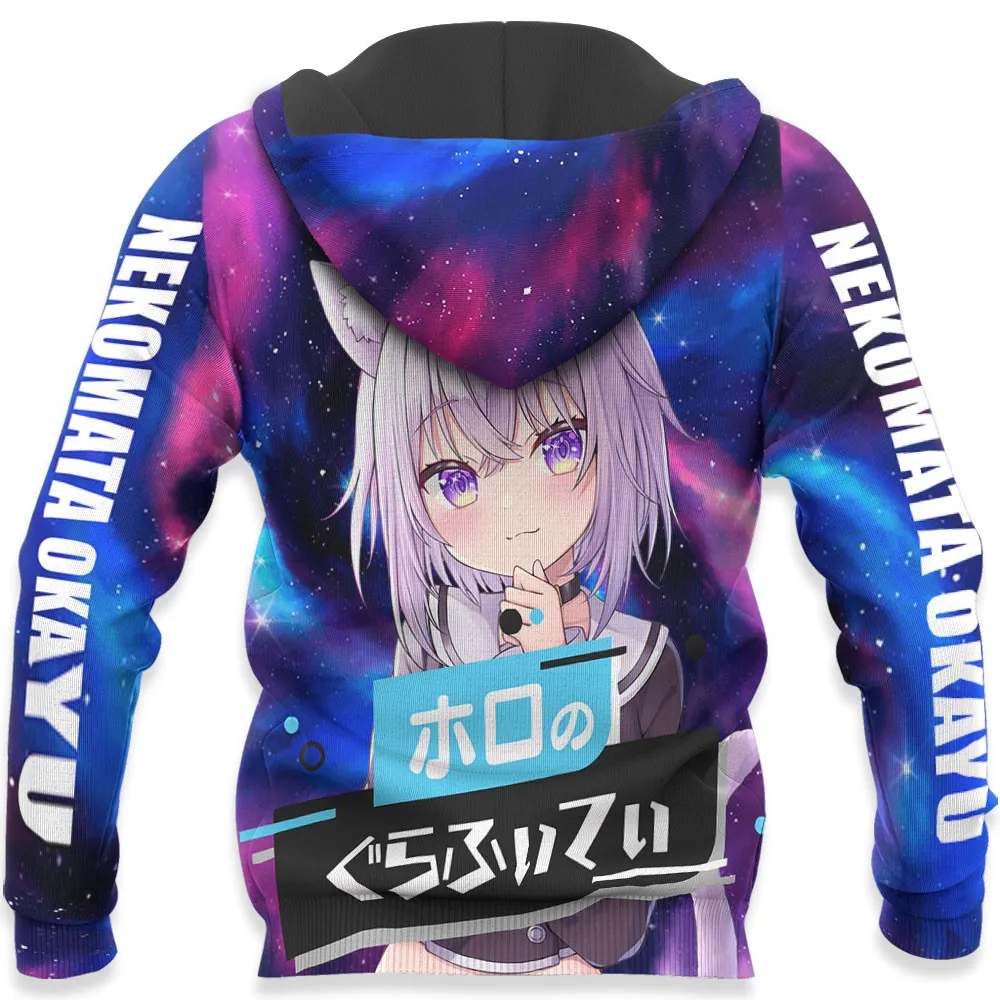 Nekomata Okayu Zip Hoodie Holo Graffiti Custom Anime Galaxy Style
