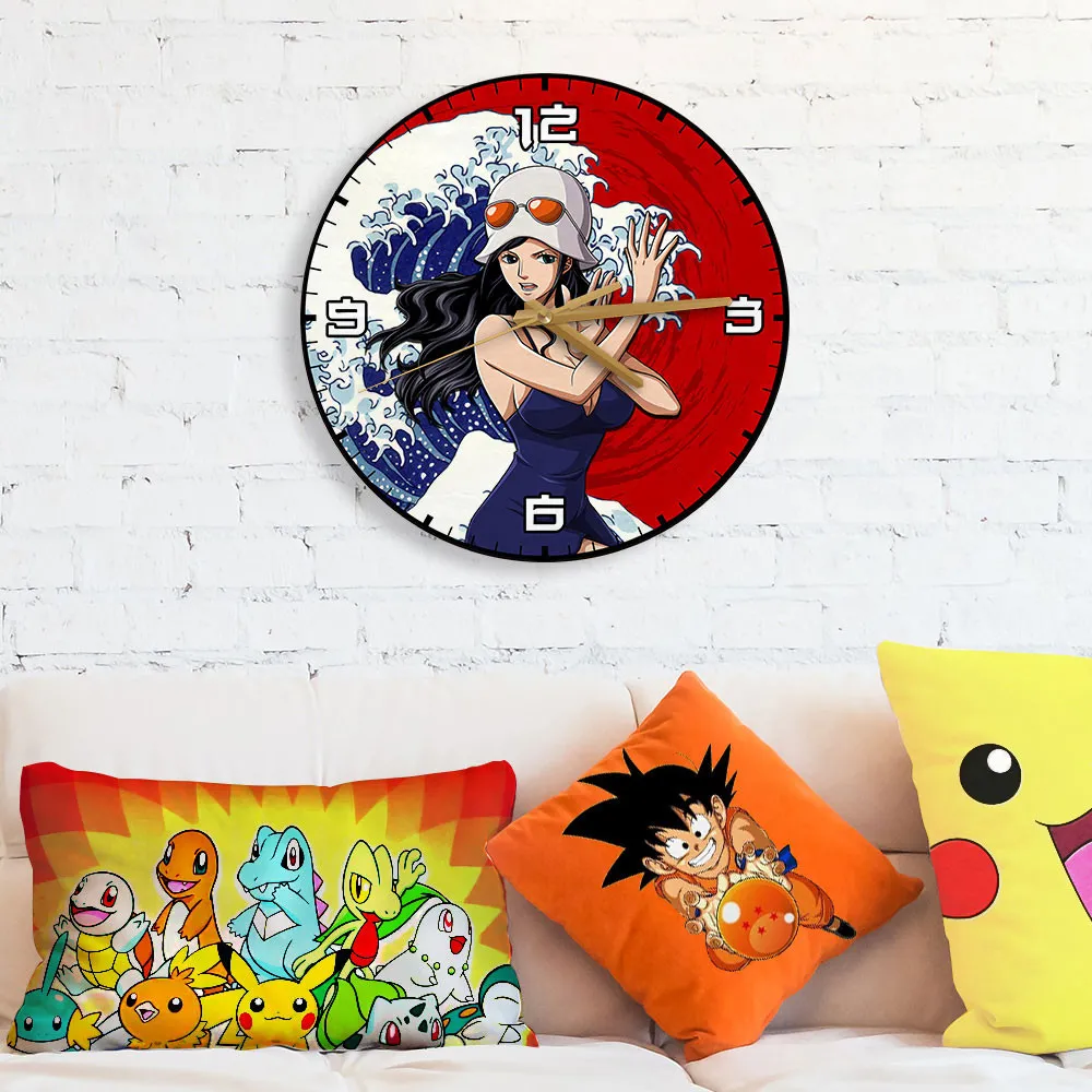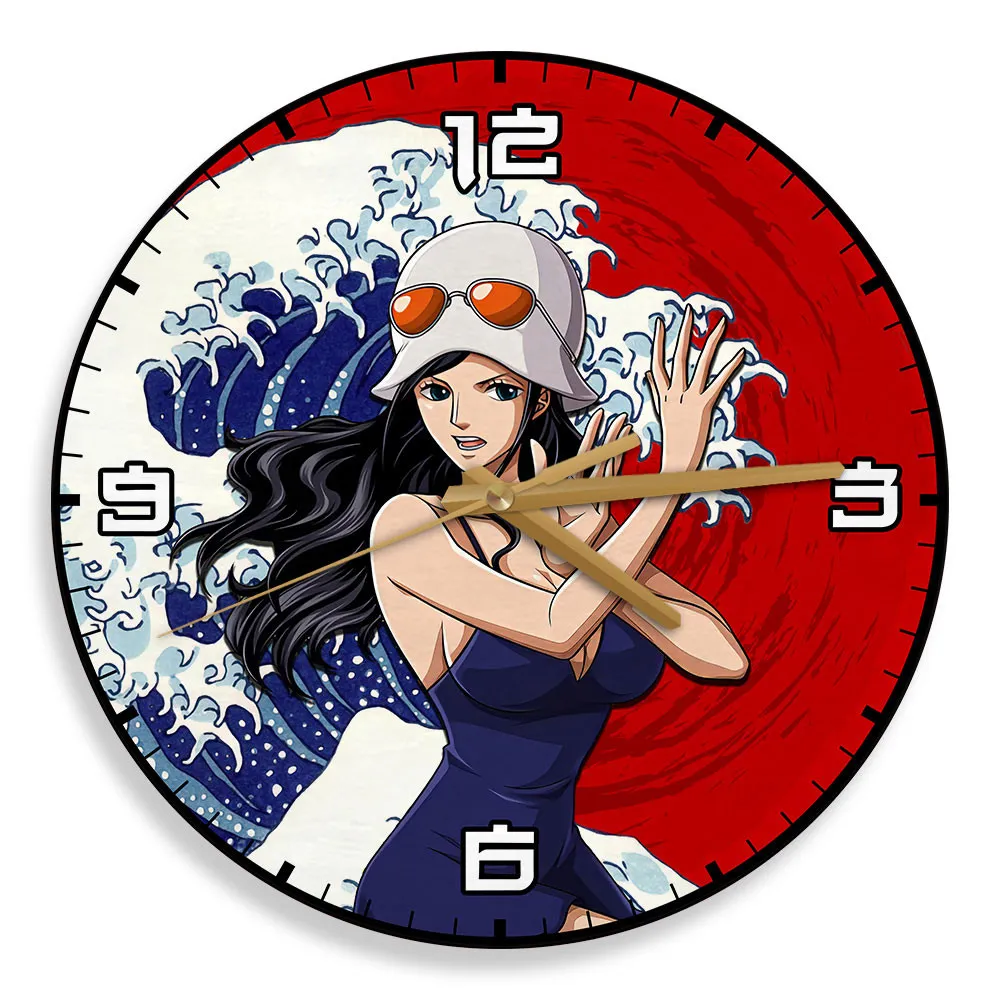Nico Robin Kanagawa Wave Red Sun Anime Wooden Wall Clock