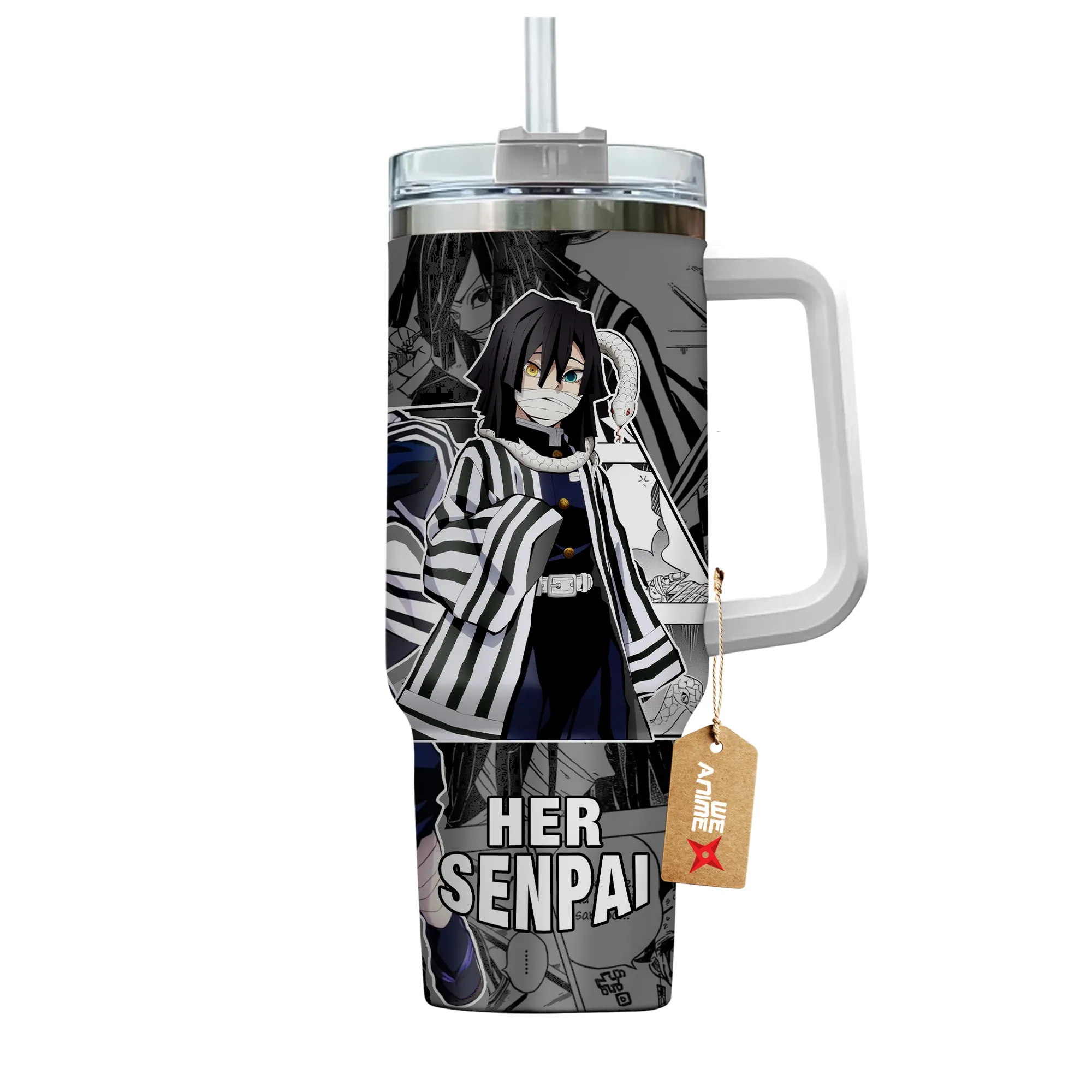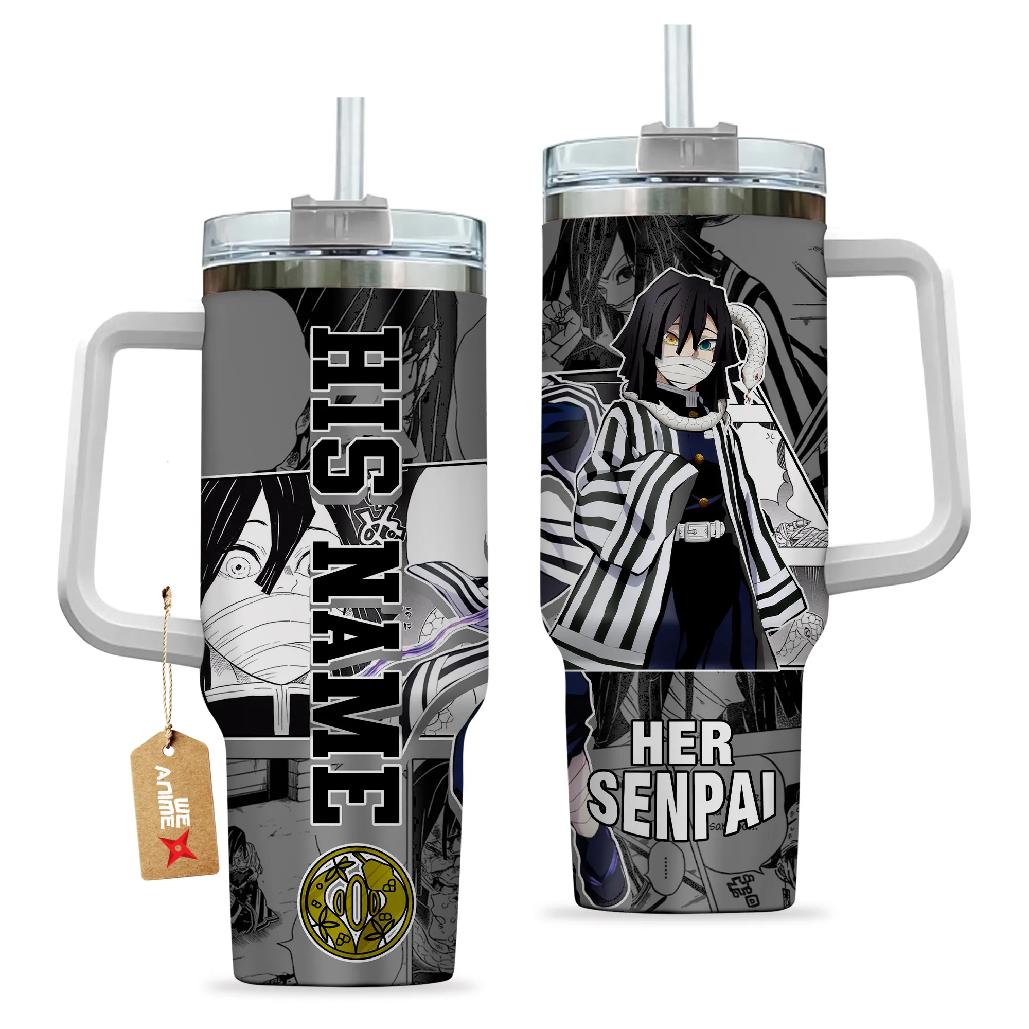 Obanai Iguro 40oz Travel Tumbler With Handle Personalized Valentines Senpai Waifu Collection