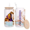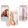 All of our Glass Can 16oz are custom-made-to-order and handcraftedwith high-quality glass material and accompanied by a convenient hard plastic straw and a wooden lid with a convenient hold for straw.