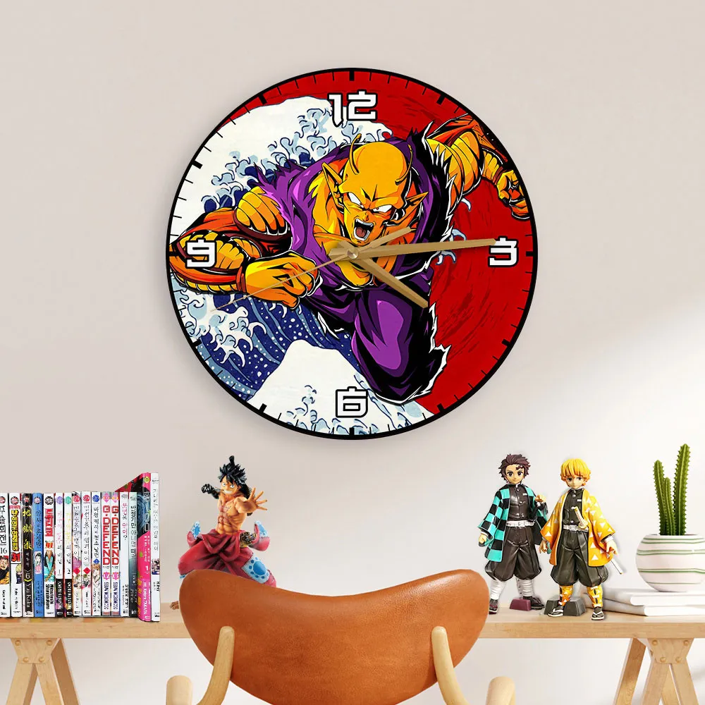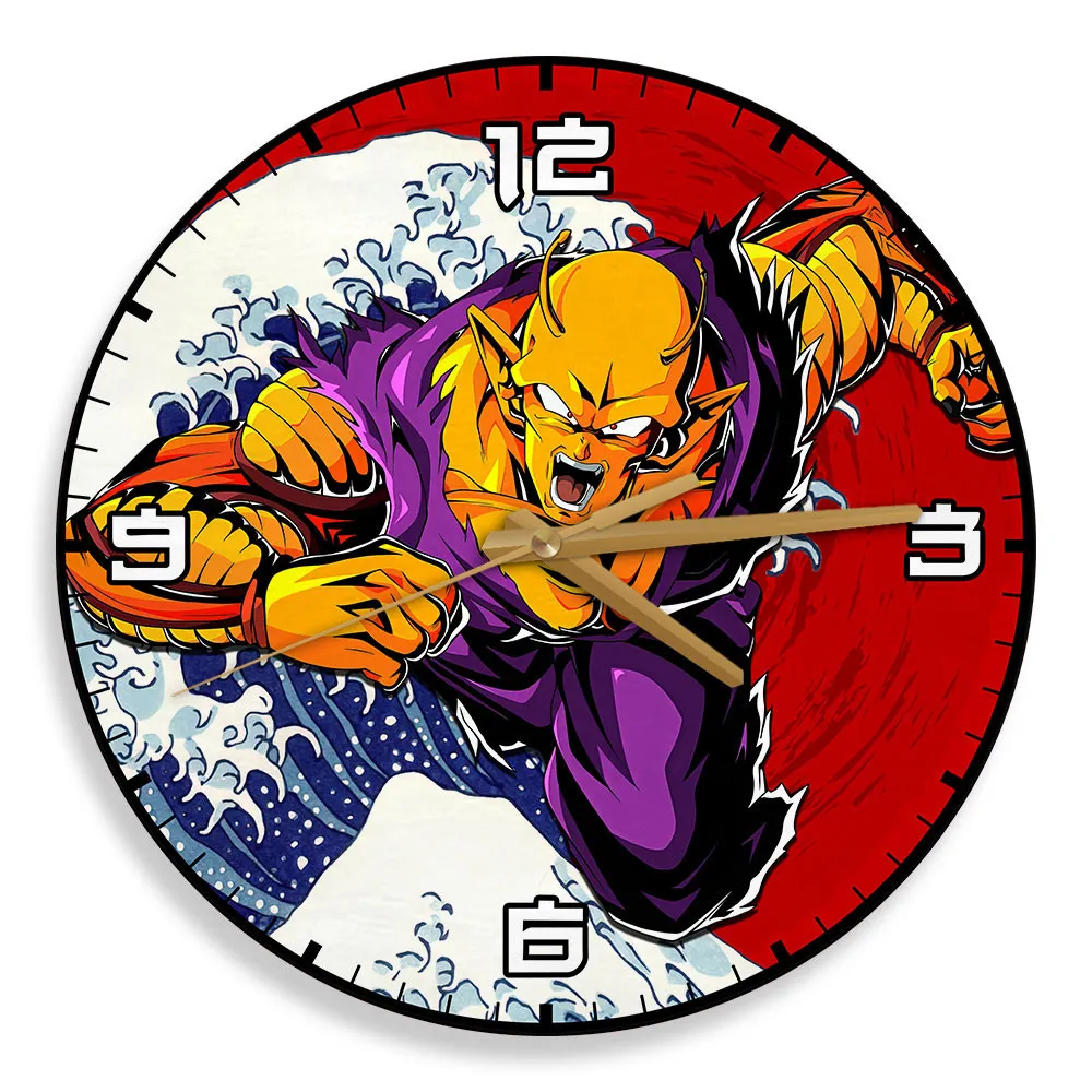 Orange Piccolo Kanagawa Wave Red Sun Anime Wooden Wall Clock